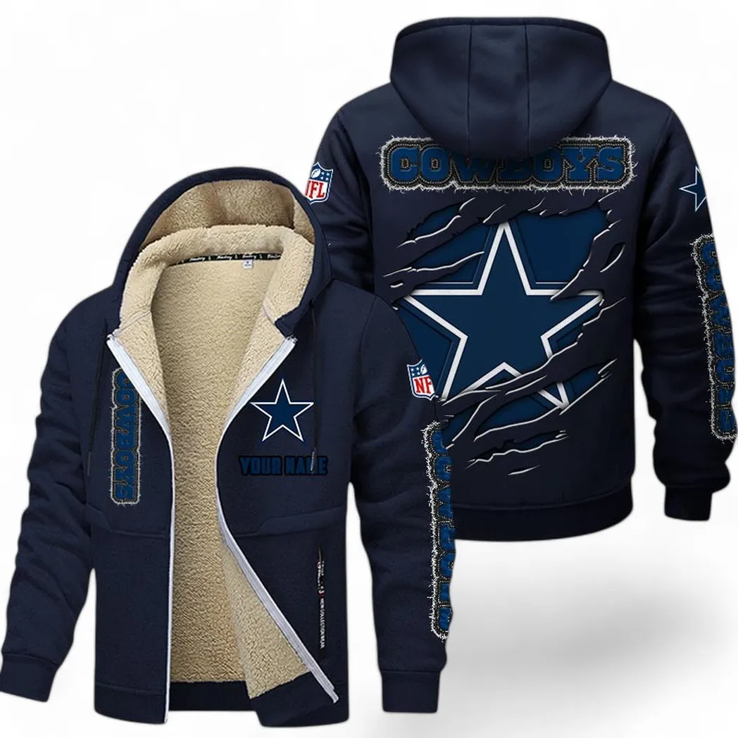 Star Crew Lamb Fleece Thick Coat Cozy Stadium Night Coat Navy Blue