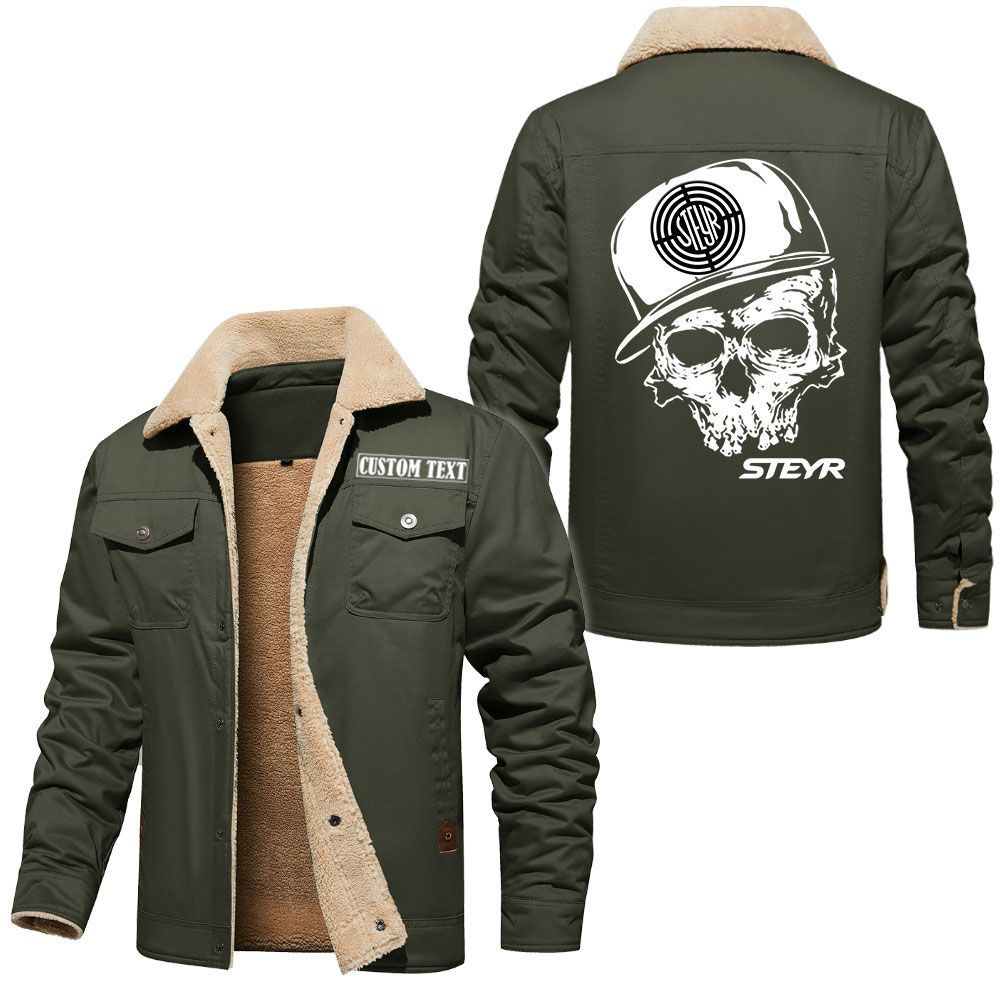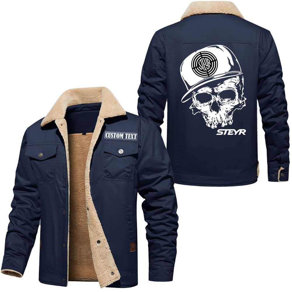 Steyr Tractor Logo Custom Name Cargo Fleece Lined Cotton Jacket Personalized Outerwear with Skull Design