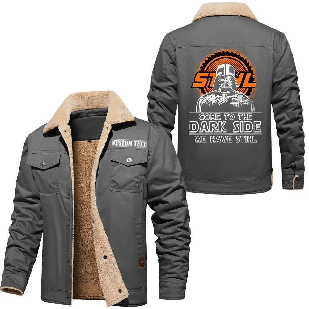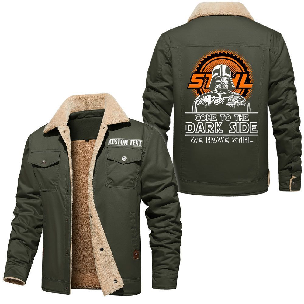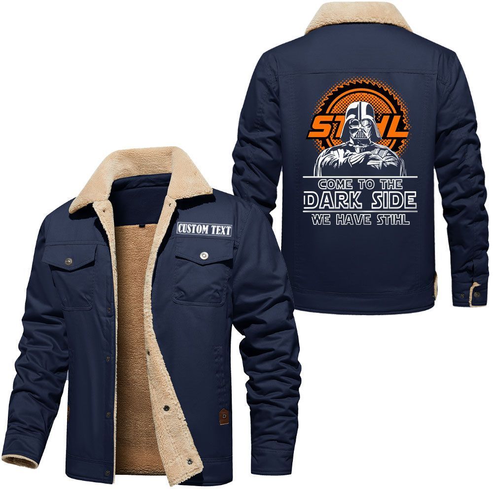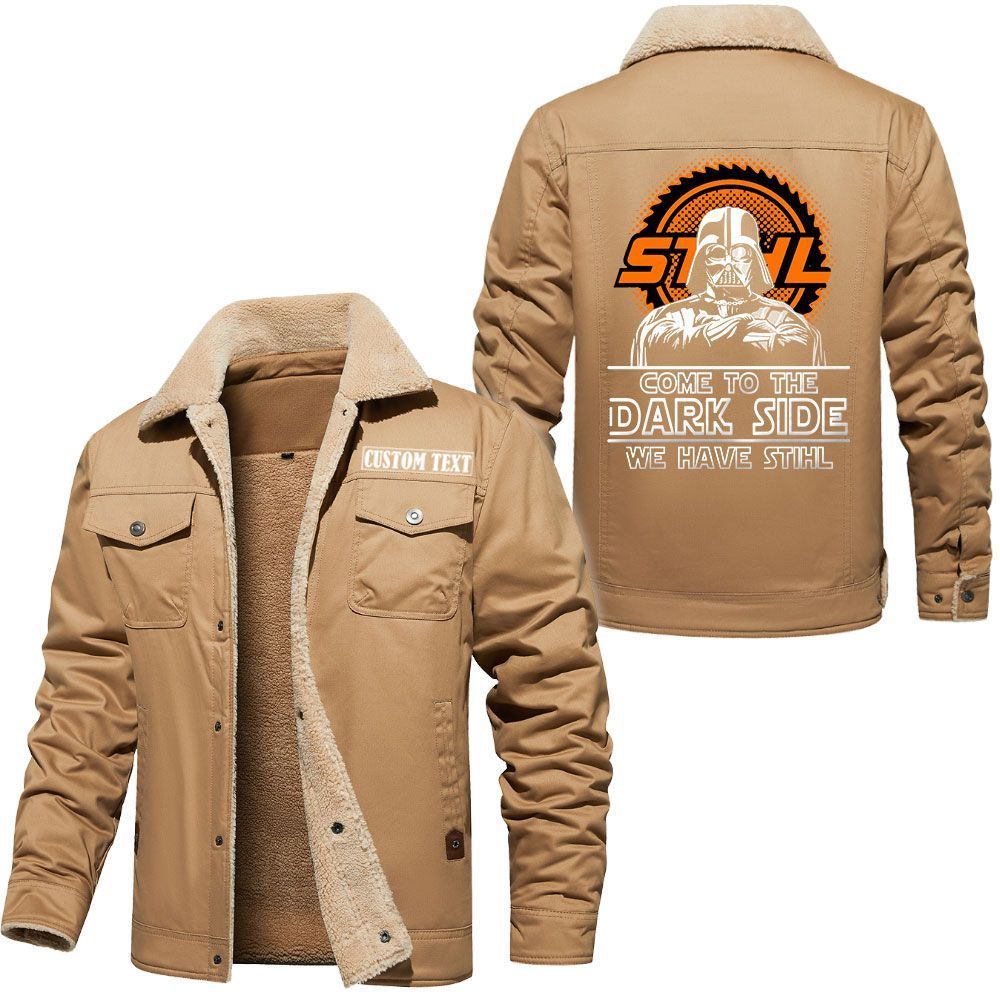 Stihl Logo Custom Name Cargo Fleece Lined Cotton Jacket Personalized Outerwear with Dark Side Star Wars Design