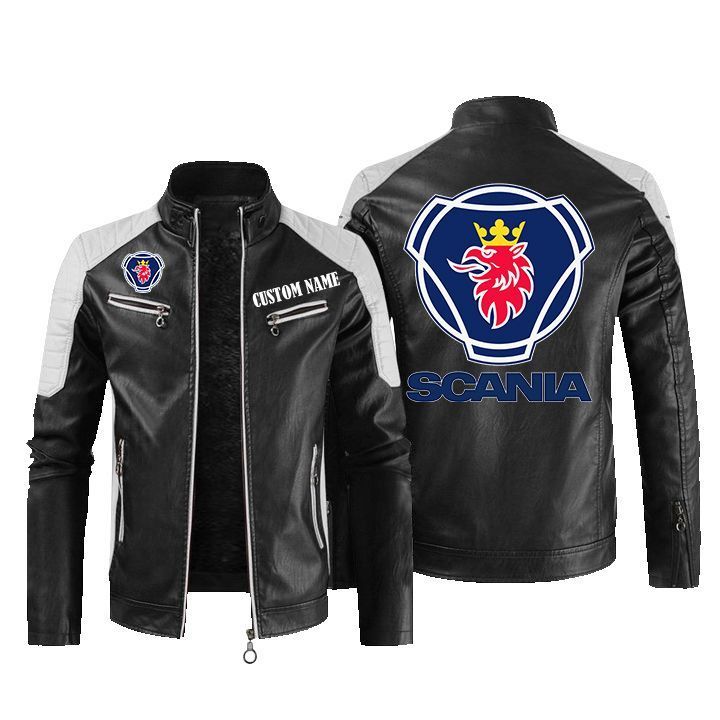 Design: Stand-collar with button closure. Front body zipper closure, two front chest zipper closure pockets, two front hip zipper closure pockets.