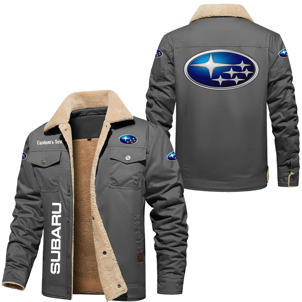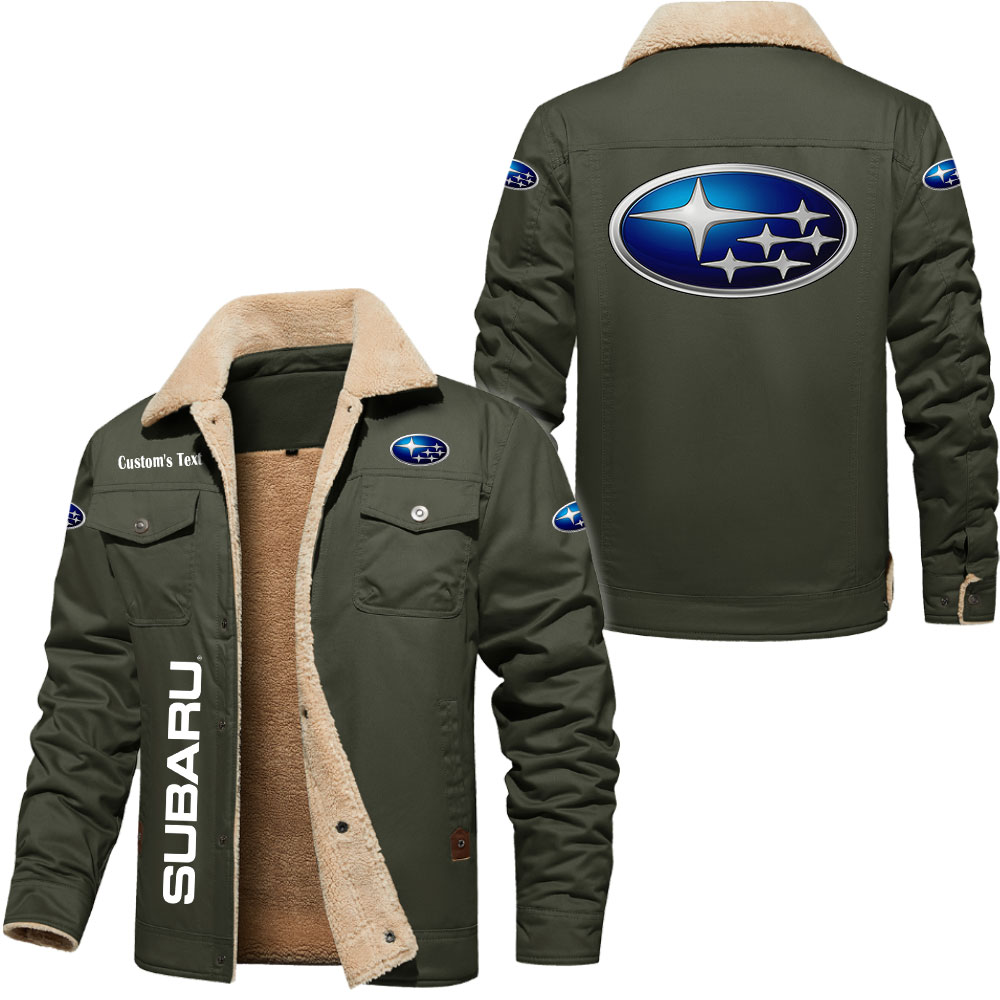 Subaru Logo Custom Text Cargo Fleece Lined Cotton Jacket
