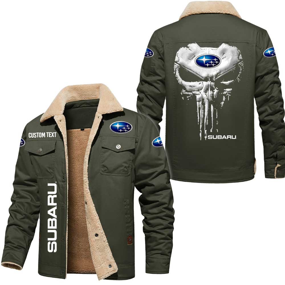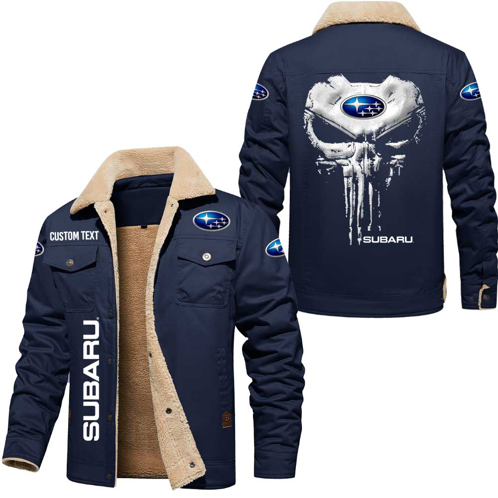 Subaru Logo Skull Design Custom Text Cargo Fleece Lined Cotton Jacket