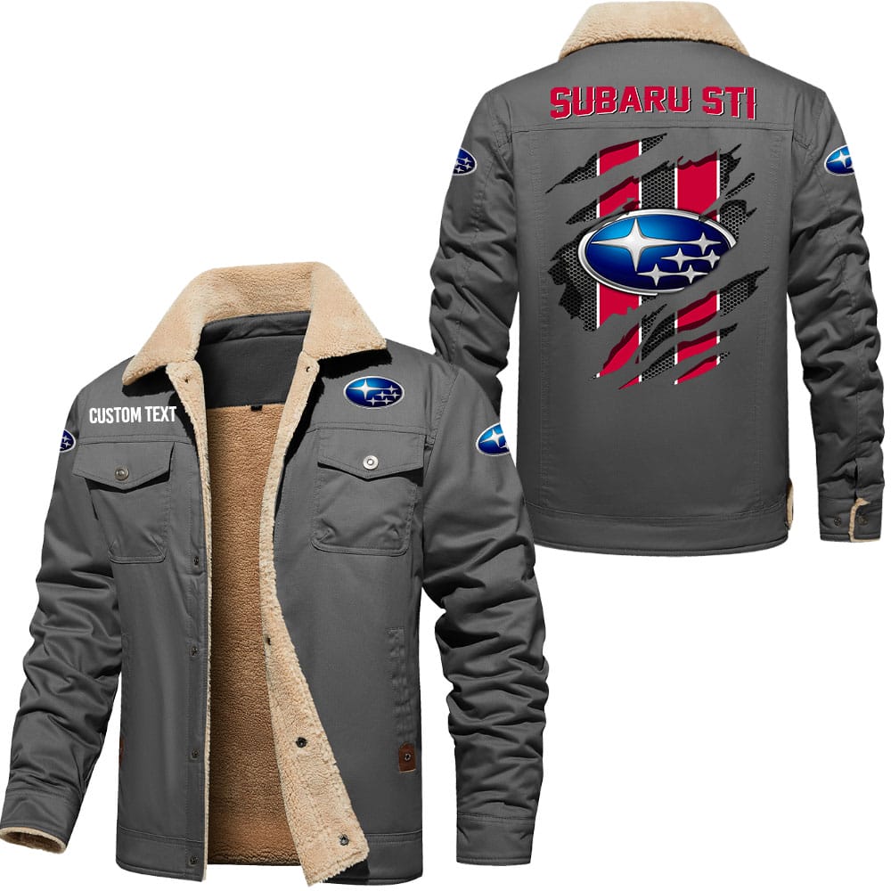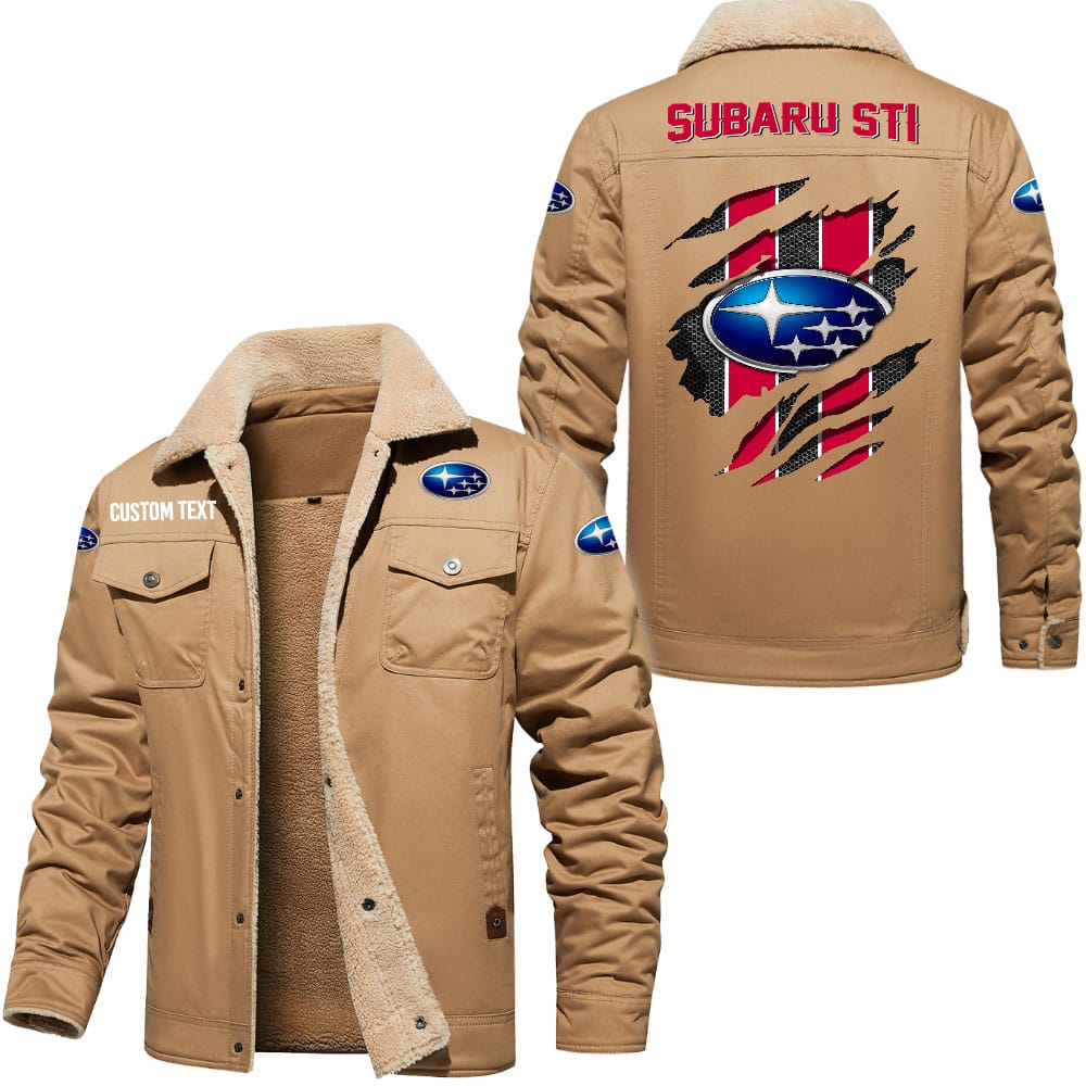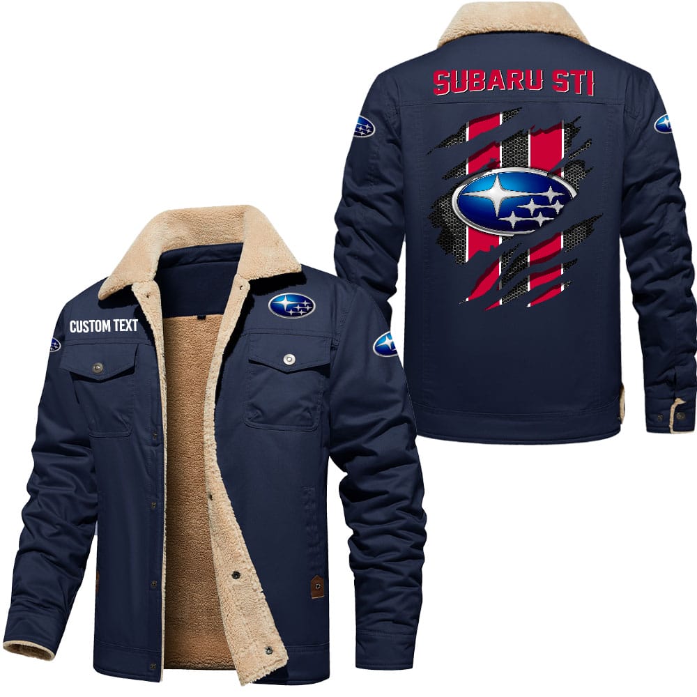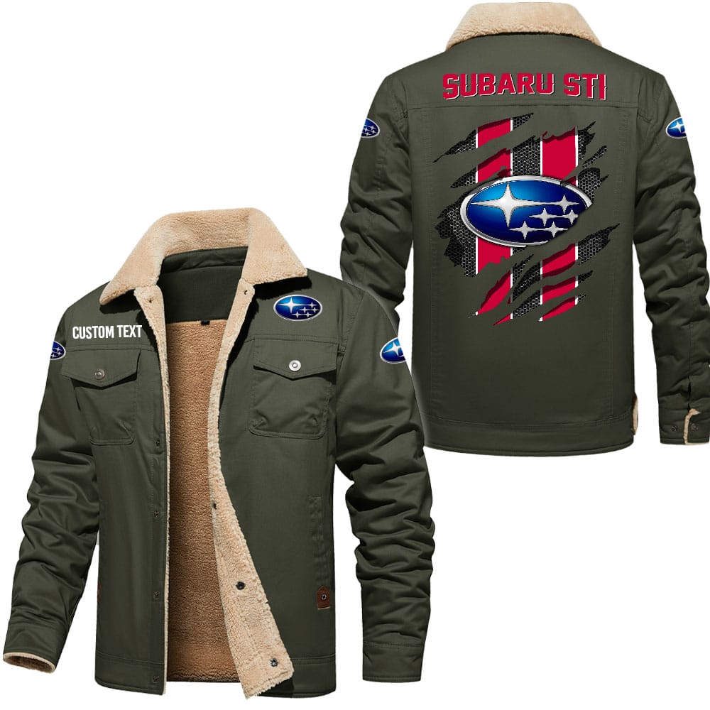 Subaru Sti Logo Custom Name Cargo Fleece Lined Cotton Jacket