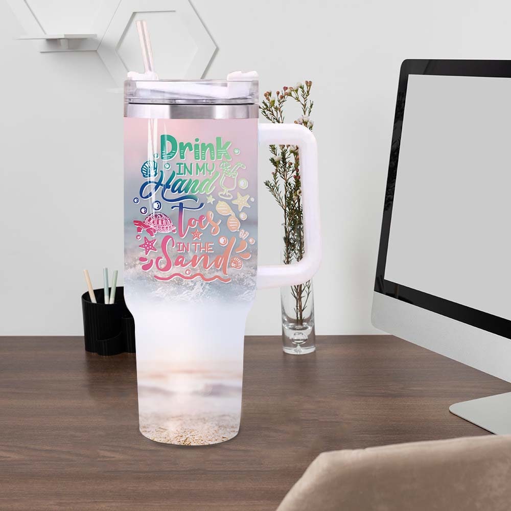 Summer Beach Vibes Custom Stanley Quencher 40Oz Stainless Steel Tumbler With Handle