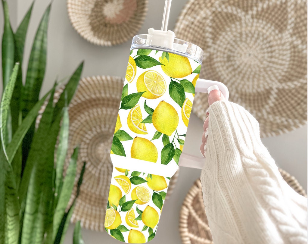 Summer Lemon Print Custom Stanley Quencher 40Oz Stainless Steel Tumbler With Handle