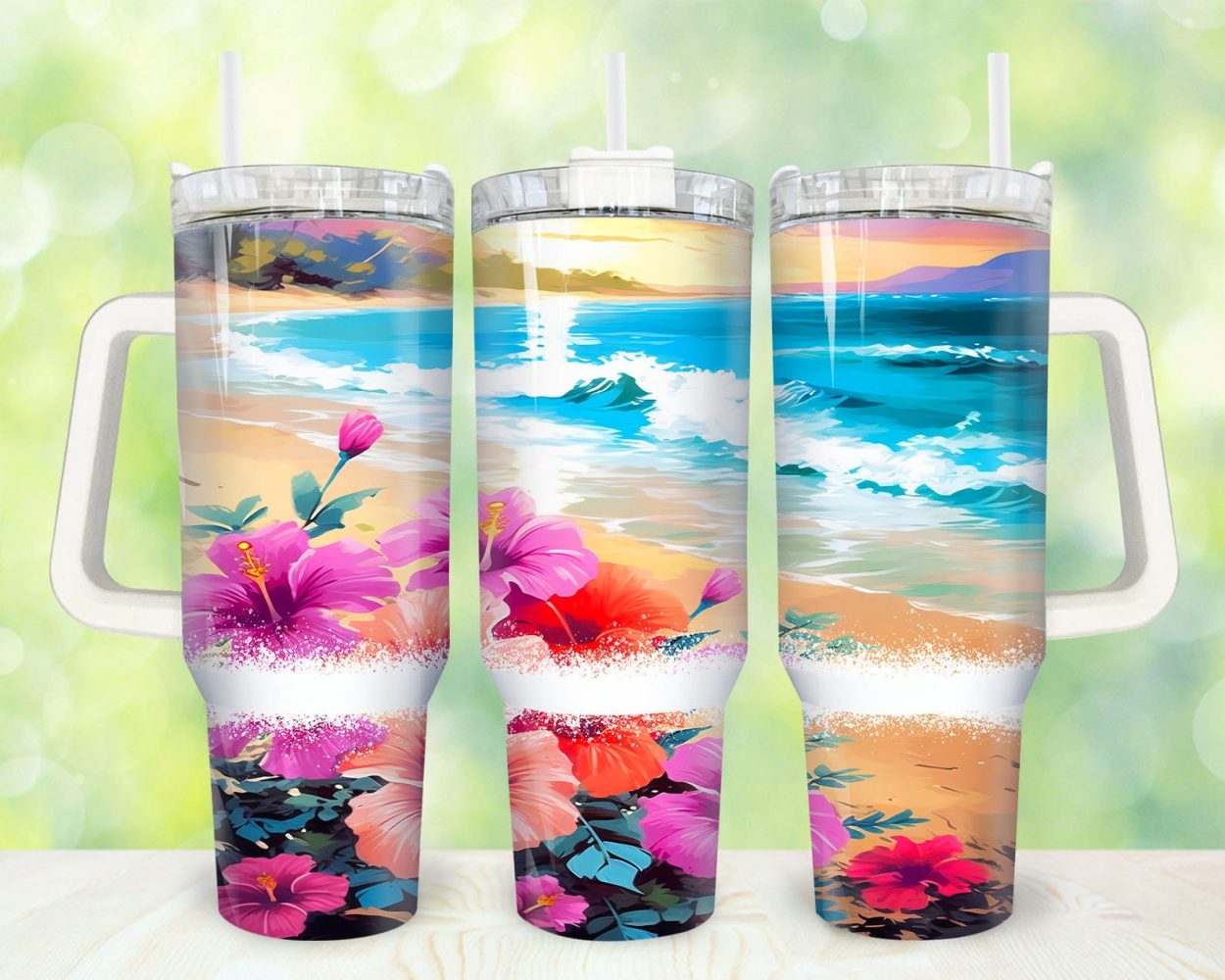 Summer Tropical Flamingo Custom Stanley Quencher 40Oz Stainless Steel Tumbler With Handle