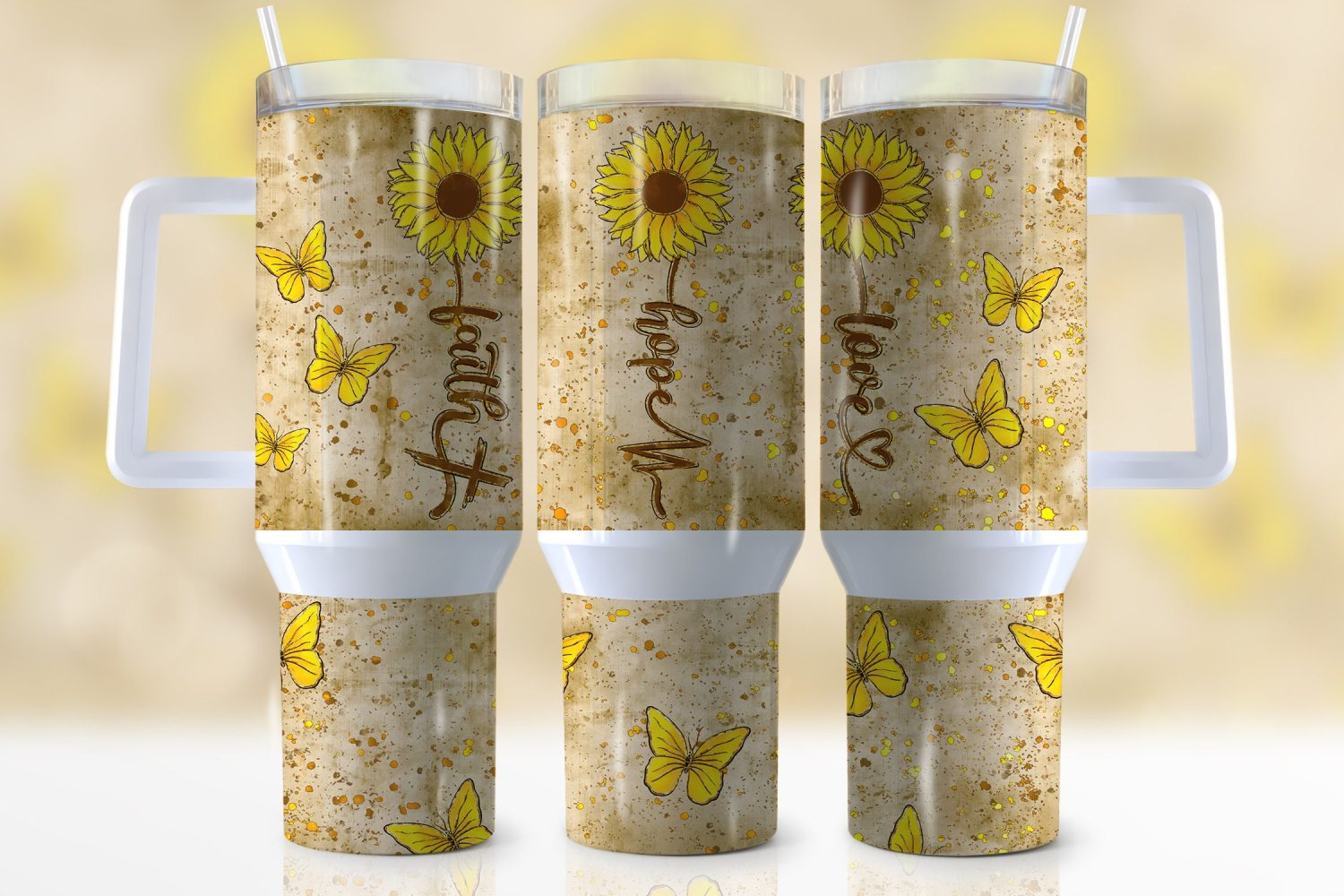 Sunflower Faith Hope Love Custom Stanley Quencher 40Oz Stainless Steel Tumbler With Handle