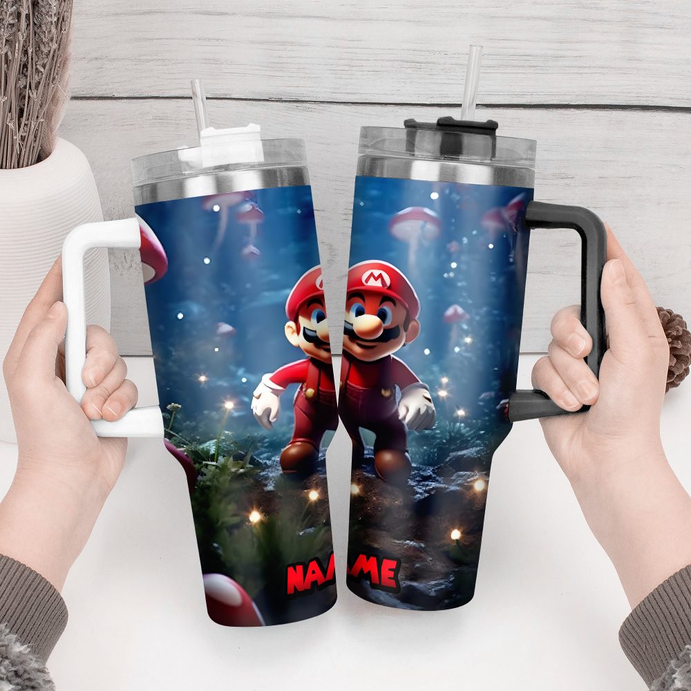 Super Mario Games Custom Stanley Quencher 40Oz Stainless Steel Tumbler With Handle