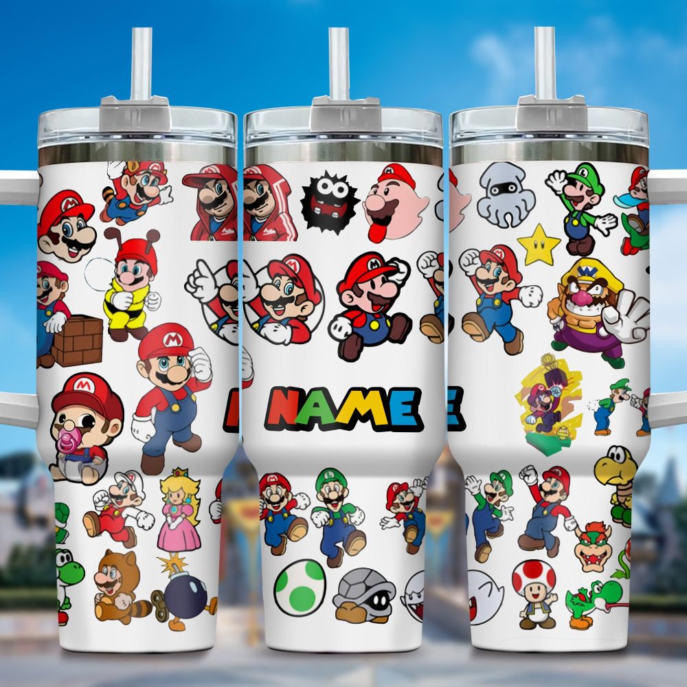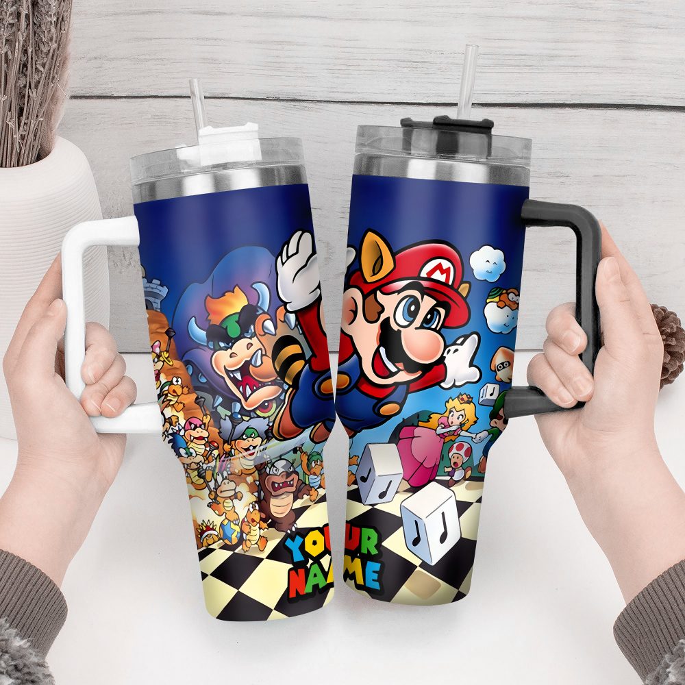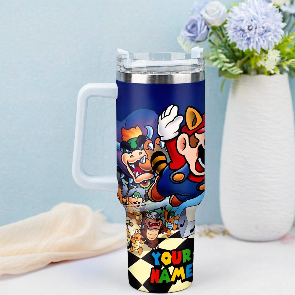 Super Mario Games Custom Stanley Quencher 40Oz Stainless Steel Tumbler With Handle