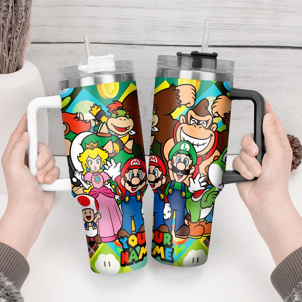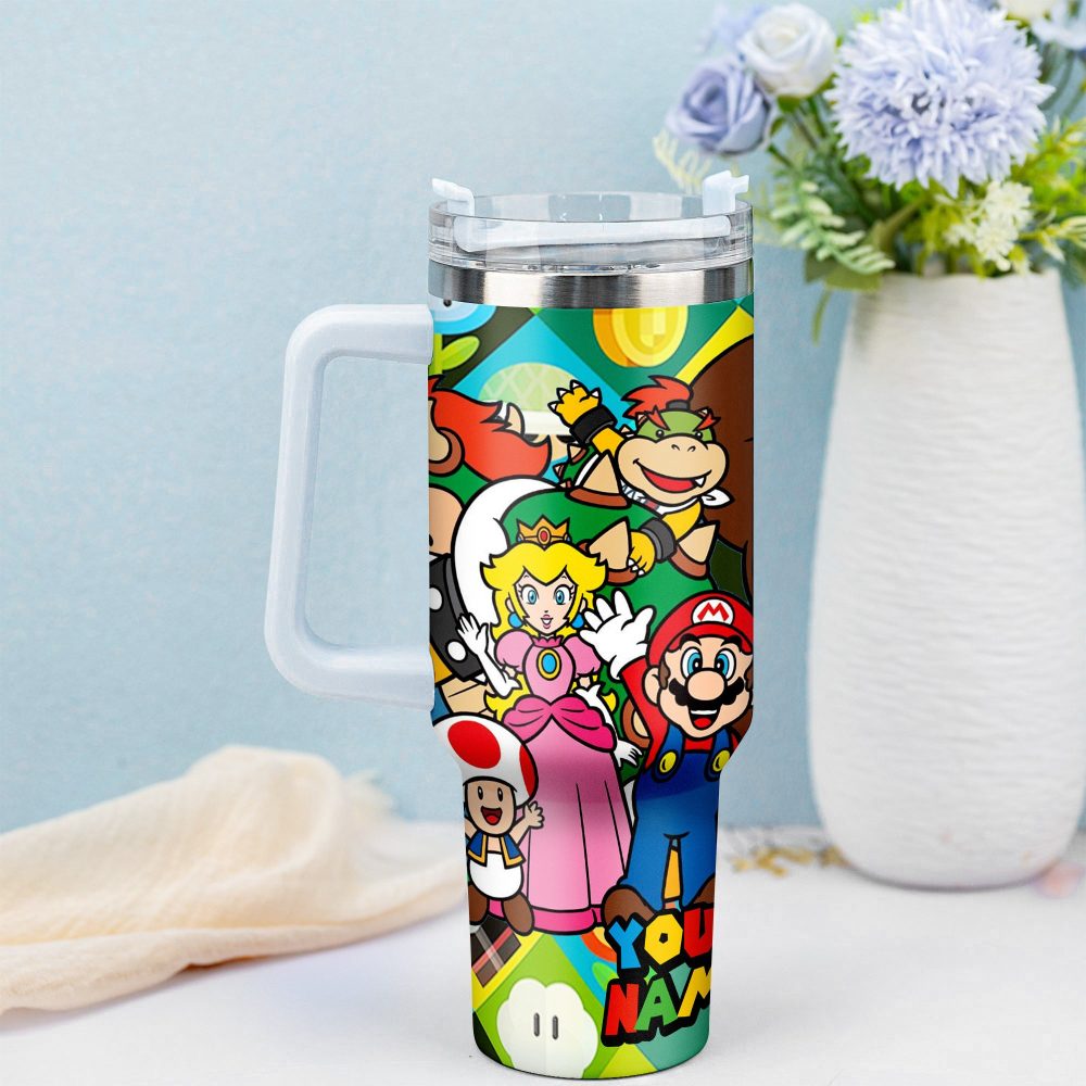 Super Mario Games Custom Stanley Quencher 40Oz Stainless Steel Tumbler With Handle