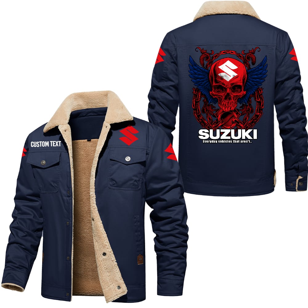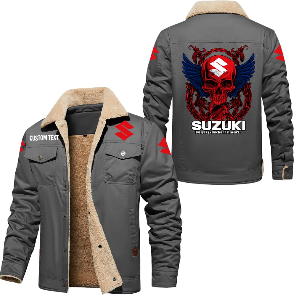 Suzuki Custom Name Skull Design Cargo Fleece Lined Cotton Jacket