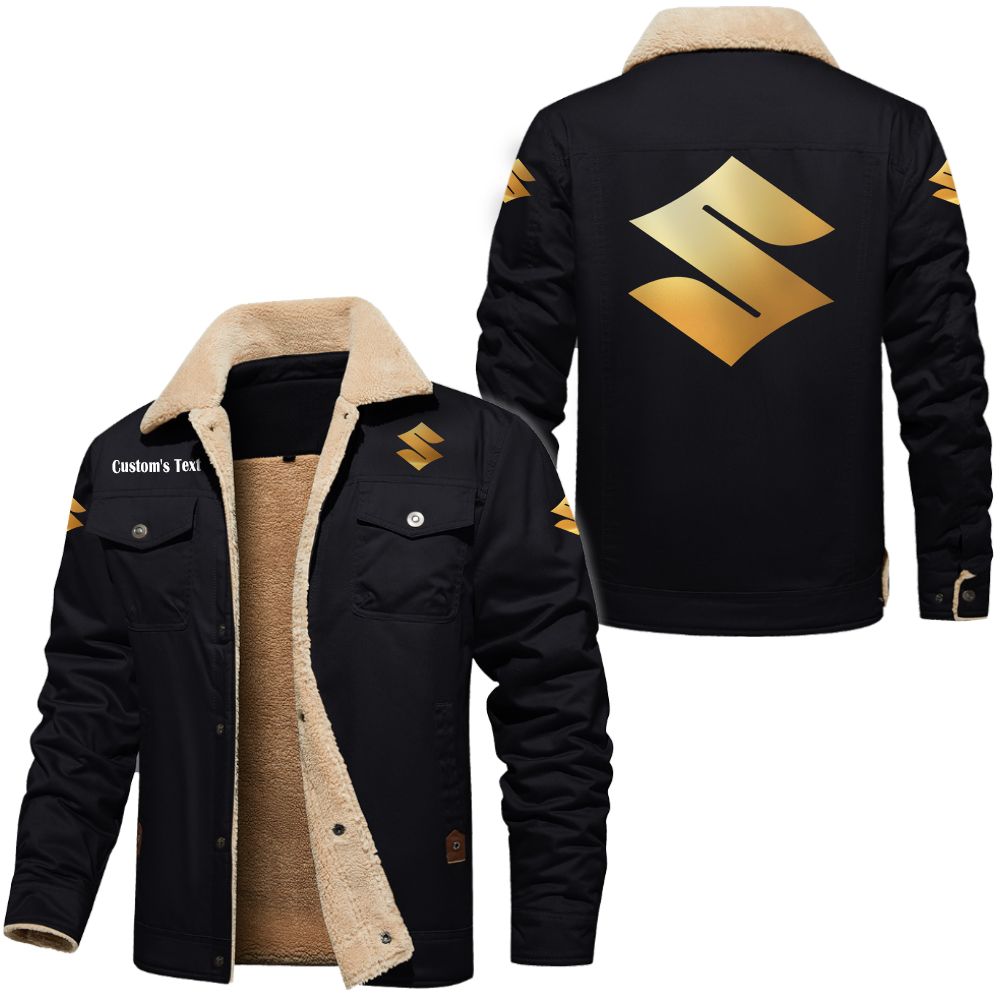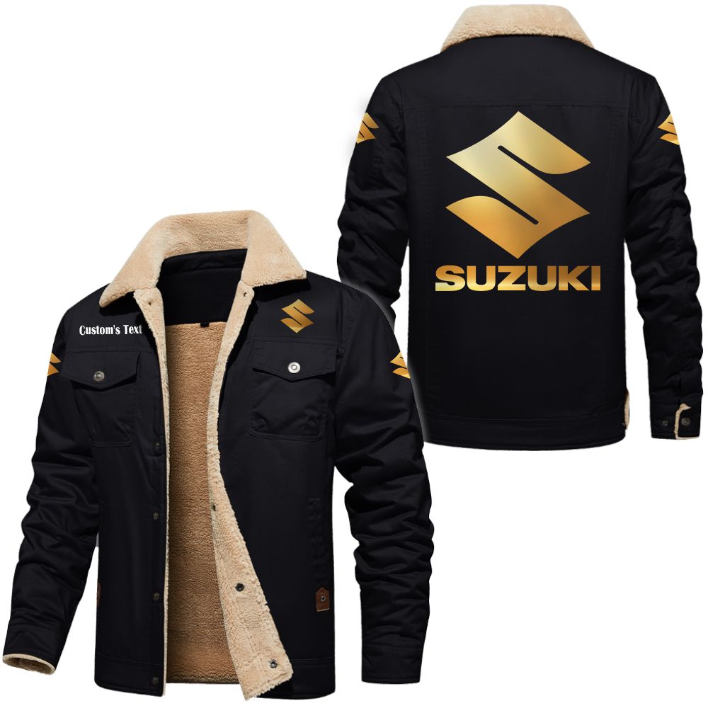 Suzuki Golden Logo Custom Cargo Fleece Lined Cotton Jacket Black
