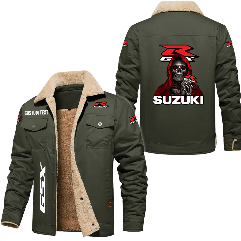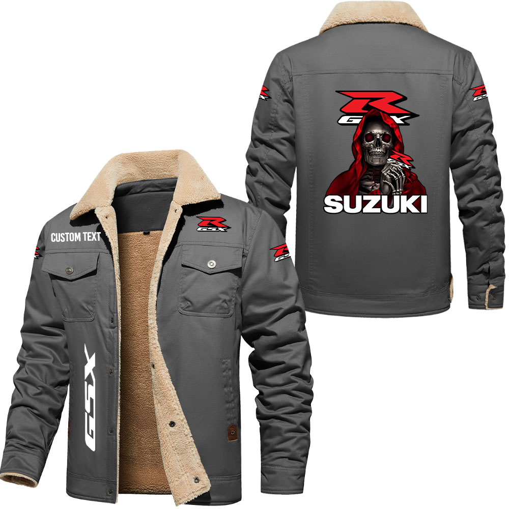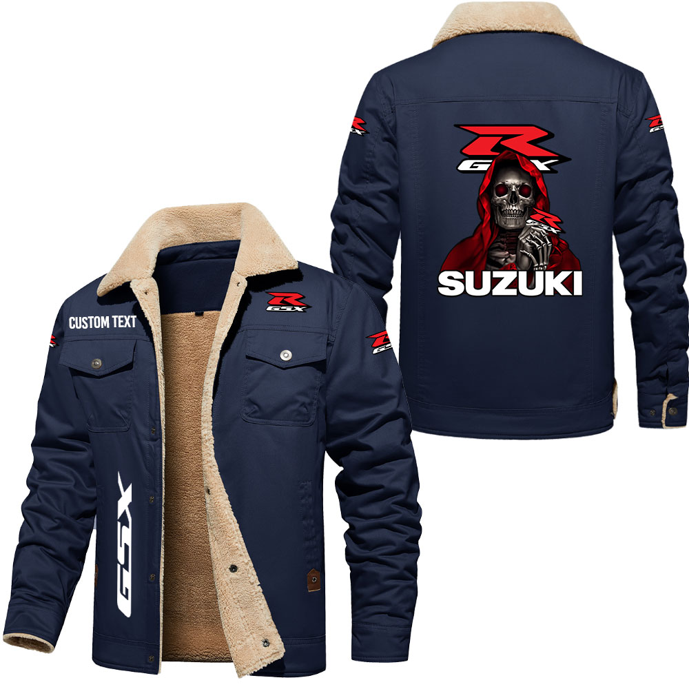 Suzuki Gsx Skull Art Print Custom Name Cargo Fleece Lined Cotton Jacket