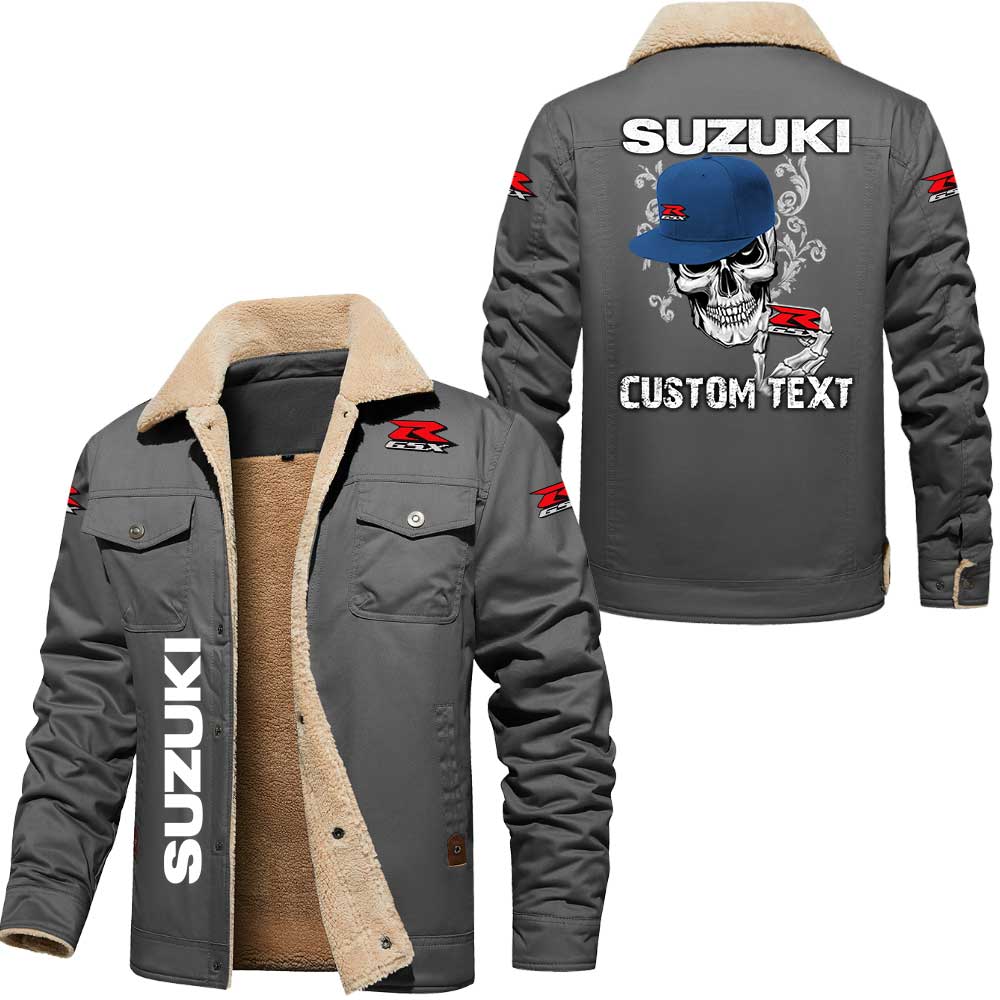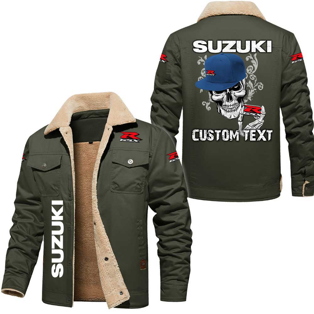 Suzuki Gsx Skull Custom Name Cargo Fleece Lined Cotton Jacket