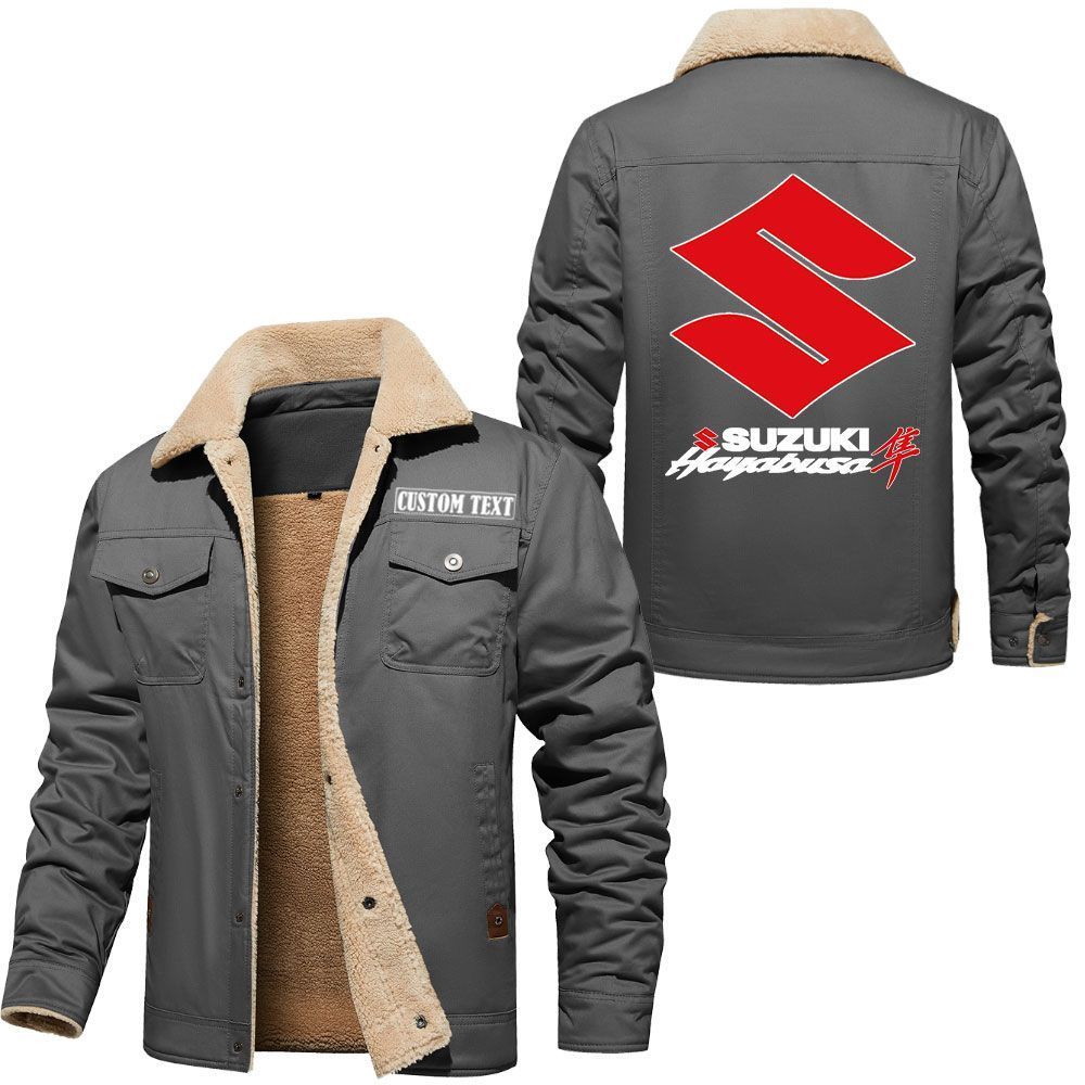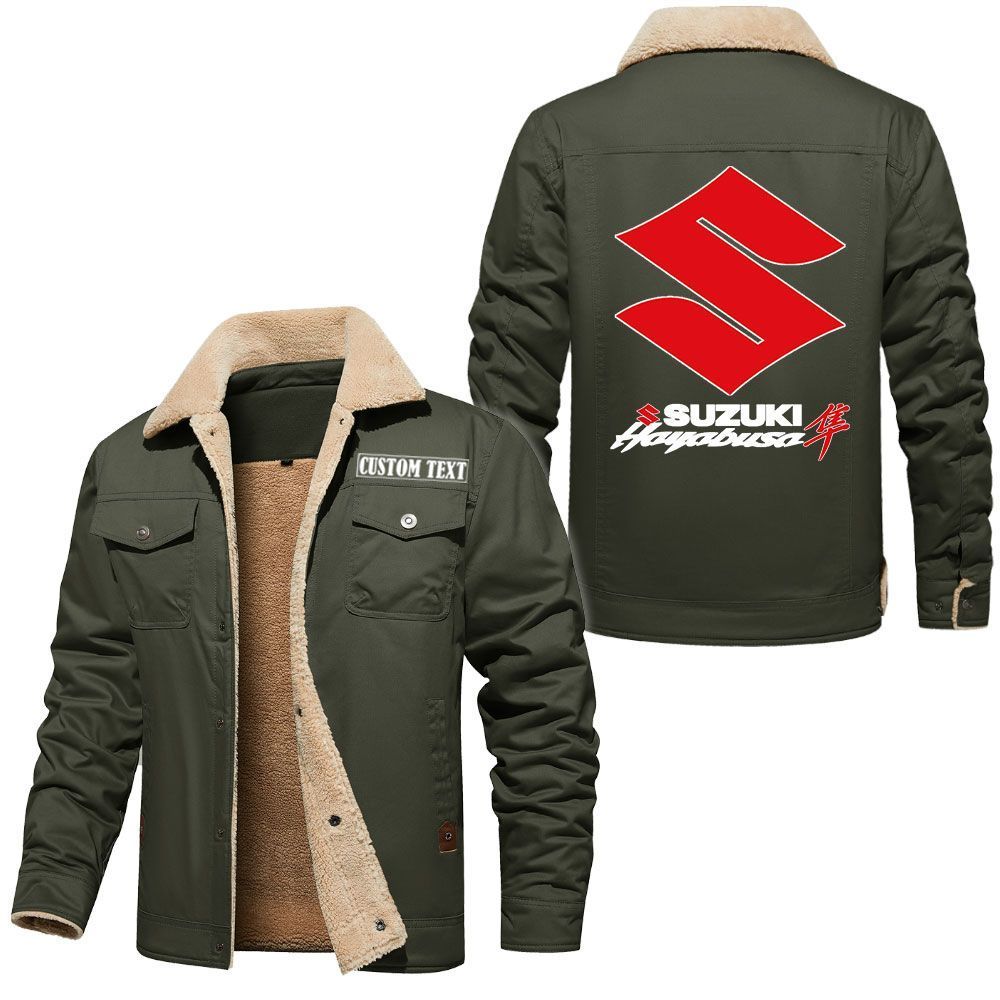 Suzuki Hayabusa Logo Custom Name Cargo Fleece Lined Cotton Jacket Stylish Warm Personalized Outerwear