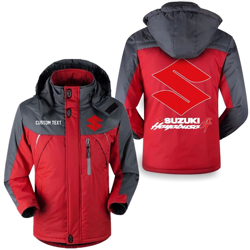 Suzuki Hayabusa Logo Custom Name Hooded Windbreaker Ski Jacket