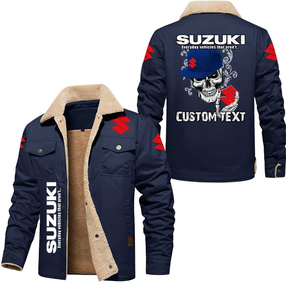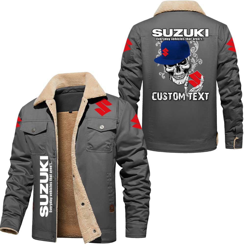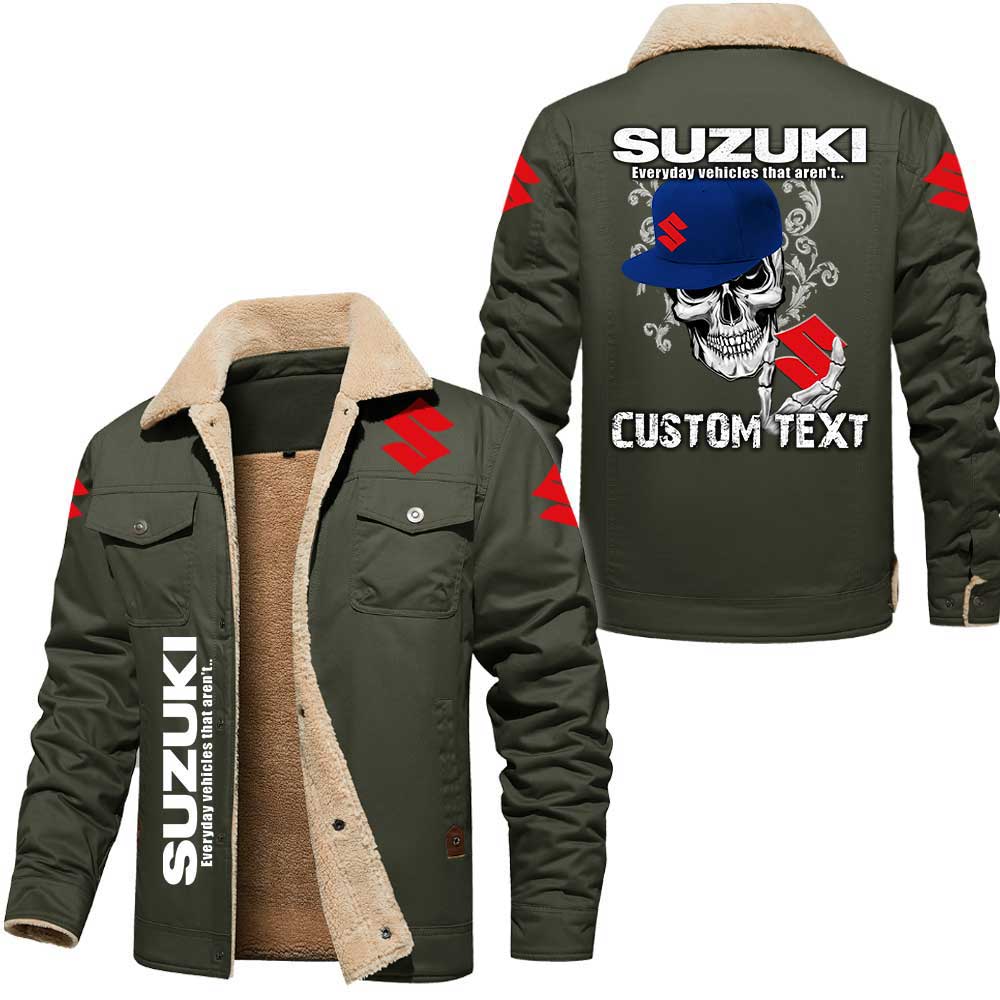 Suzuki Skull Custom Name Cargo Fleece Lined Cotton Jacket