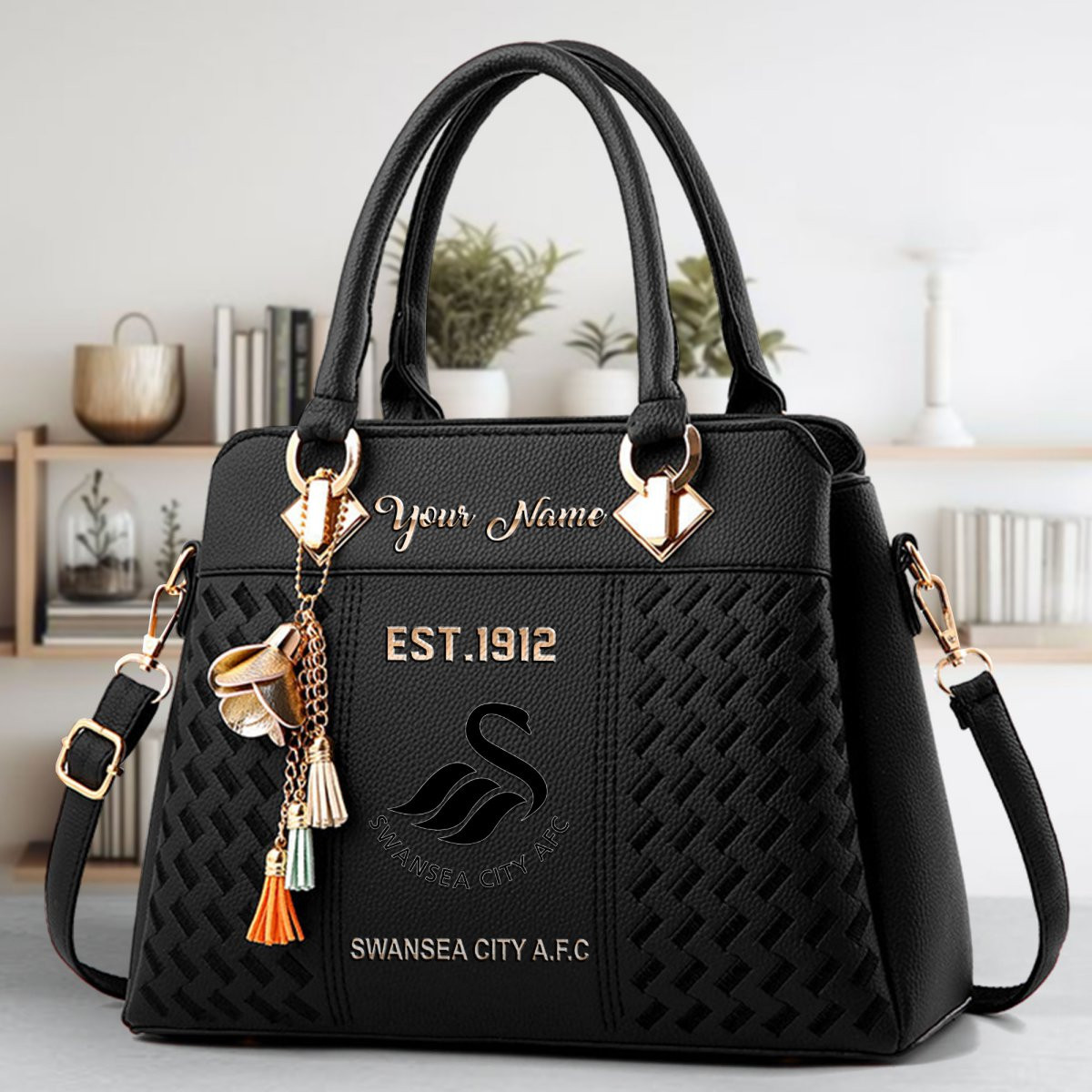 Swansea City Crossbody Zip Handbag With Tassel Custom Name For Women