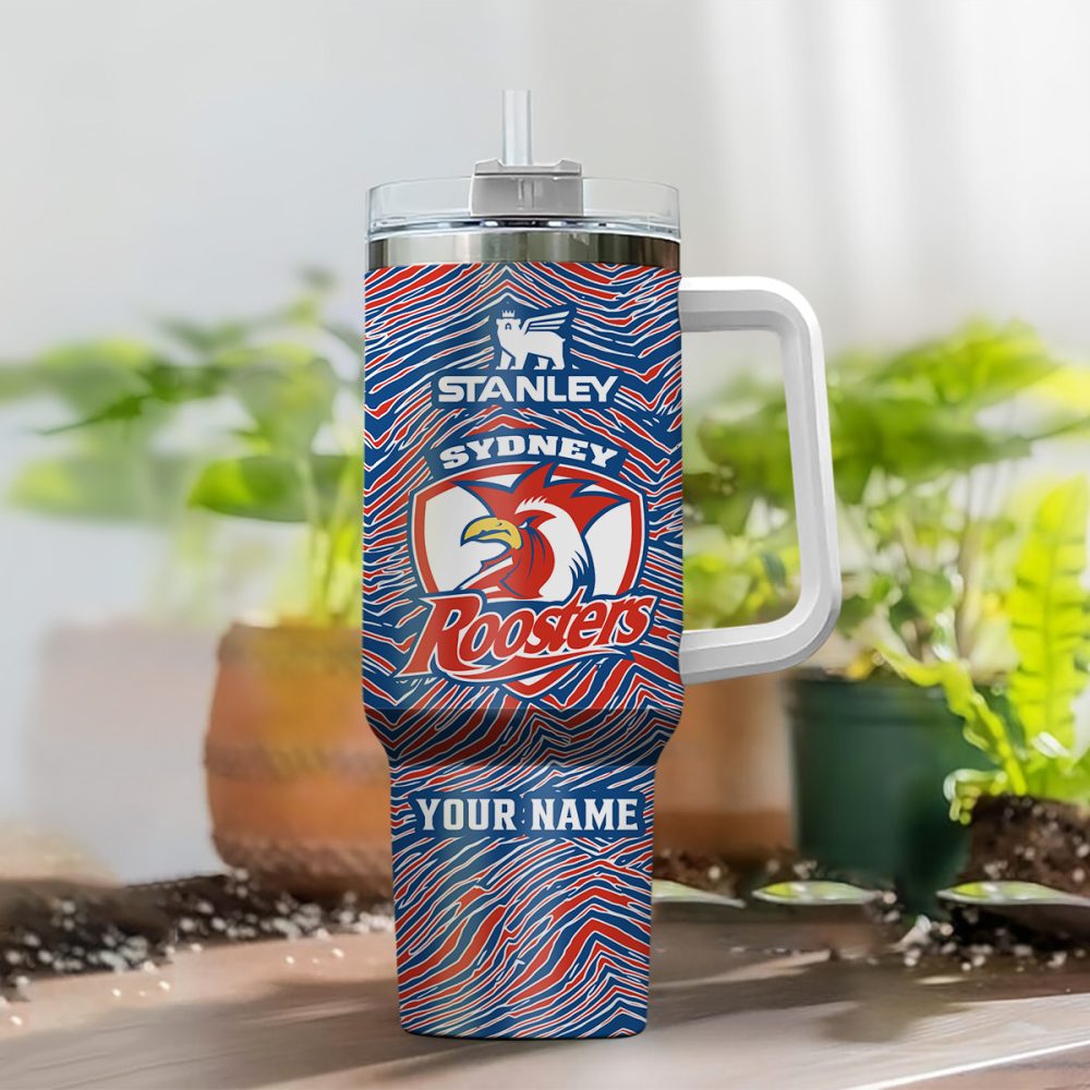 Sydney Roosters Nrl Zubaz Print Custom Stanley Quencher 40Oz Stainless Steel Tumbler With Handle