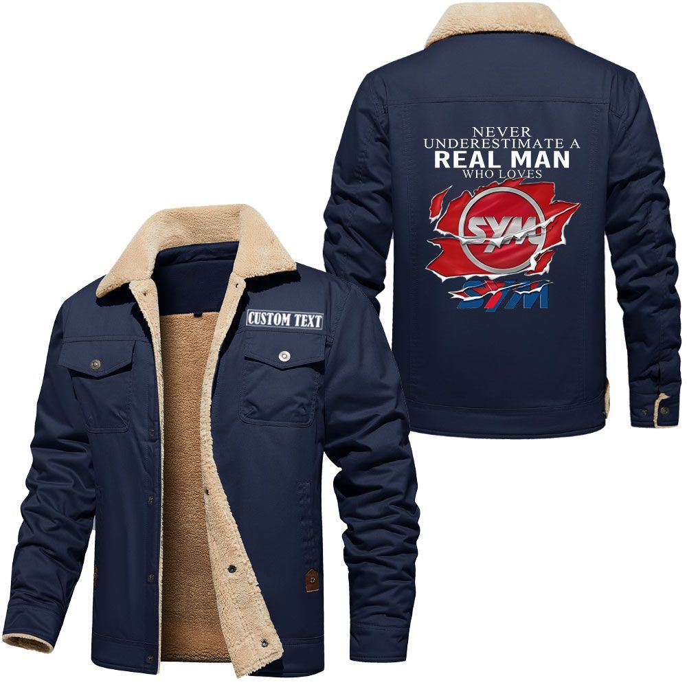 SYM Motors Logo Custom Name Cargo Fleece Lined Cotton Jacket A Real Man Who Loves Personalized Outerwear