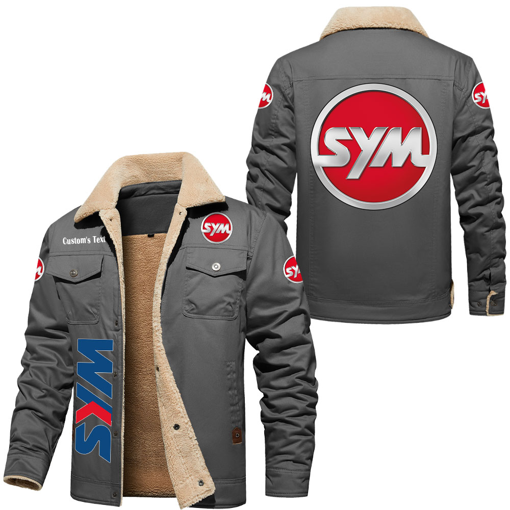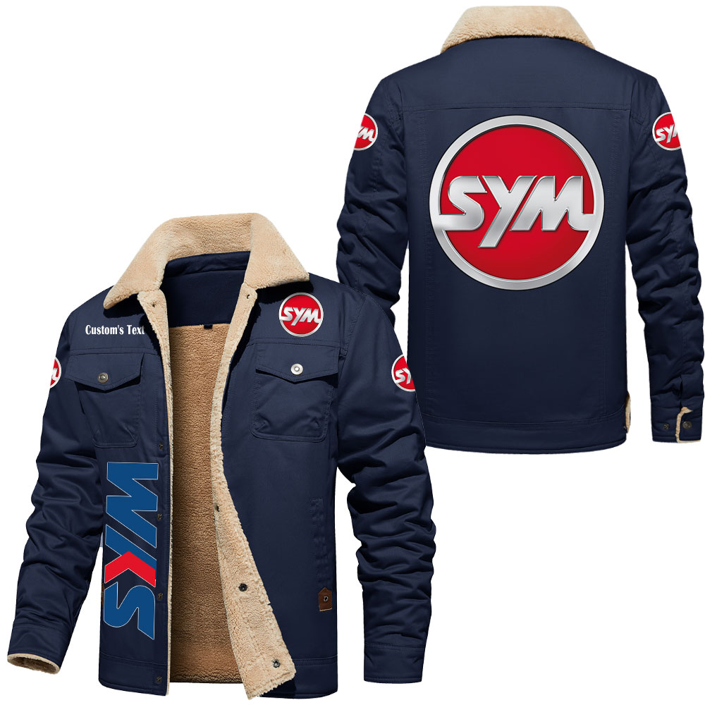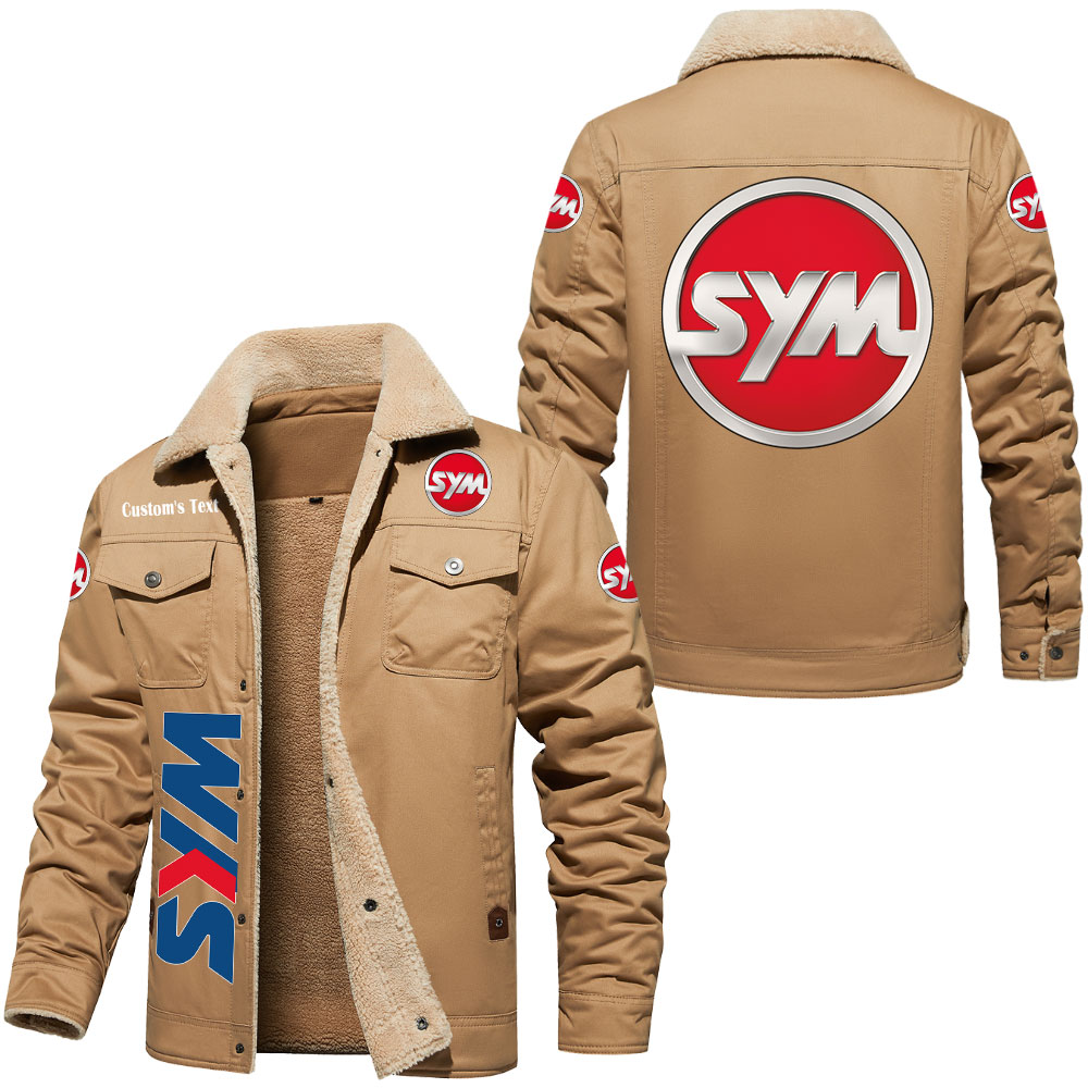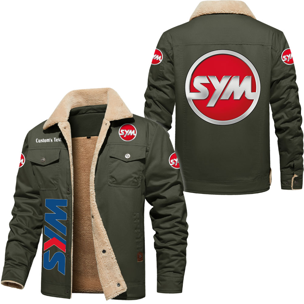 Sym Motors Logo Custom Text Cargo Fleece Lined Cotton Jacket