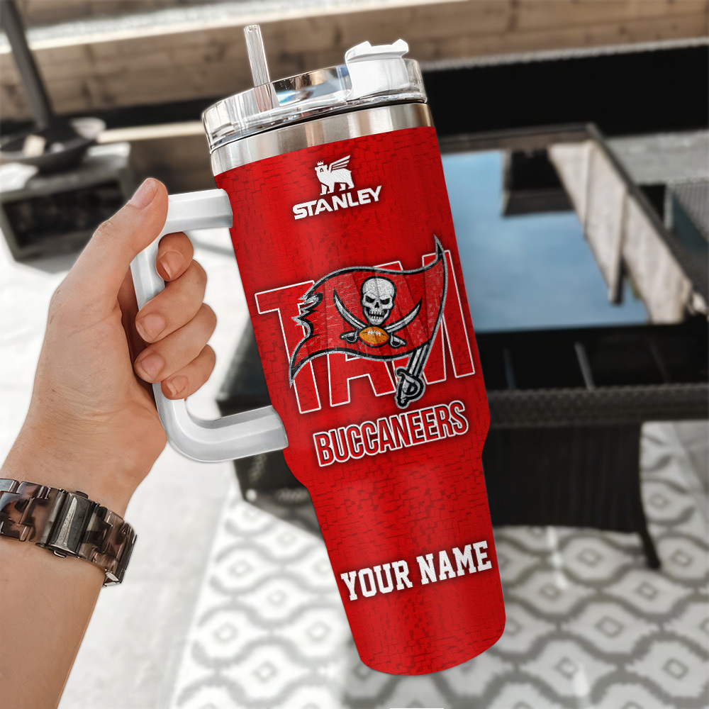 Tampa Bay Buccaneers Nfl 3D Logo Custom Stanley Quencher 40Oz Stainless Steel Tumbler With Handle