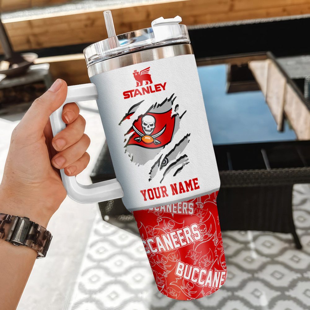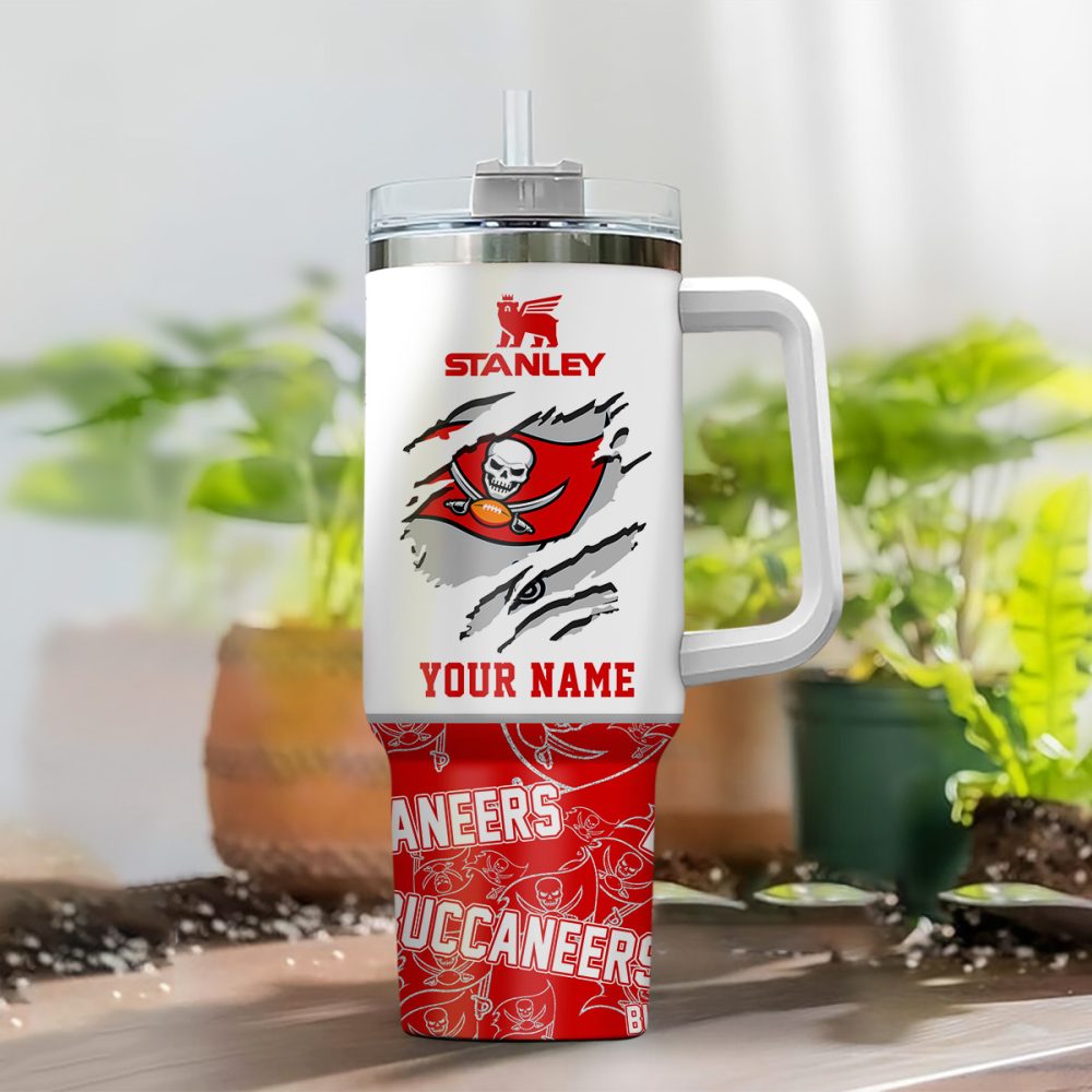 Tampa Bay Buccaneers Nfl Custom Stanley Quencher 40Oz Stainless Steel Tumbler With Handle