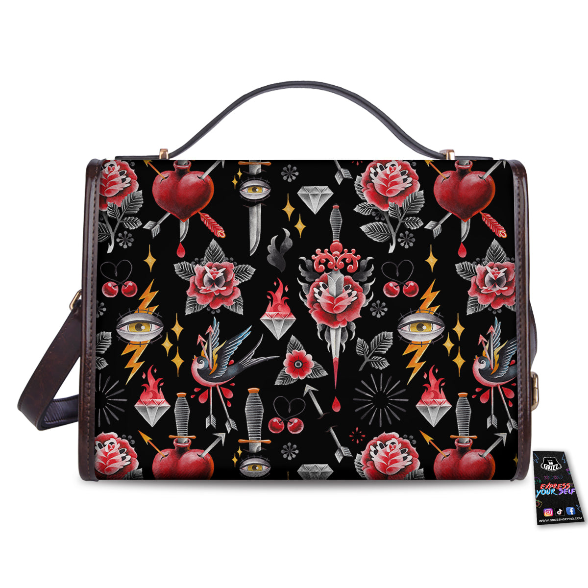 Tattoo Watercolor Print Pattern Women’s Satchel Bag