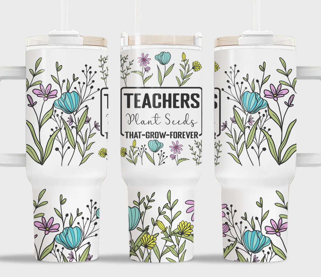 Teacher Appreciation Wildflowers Custom Stanley Quencher 40Oz Stainless Steel Tumbler With Handle