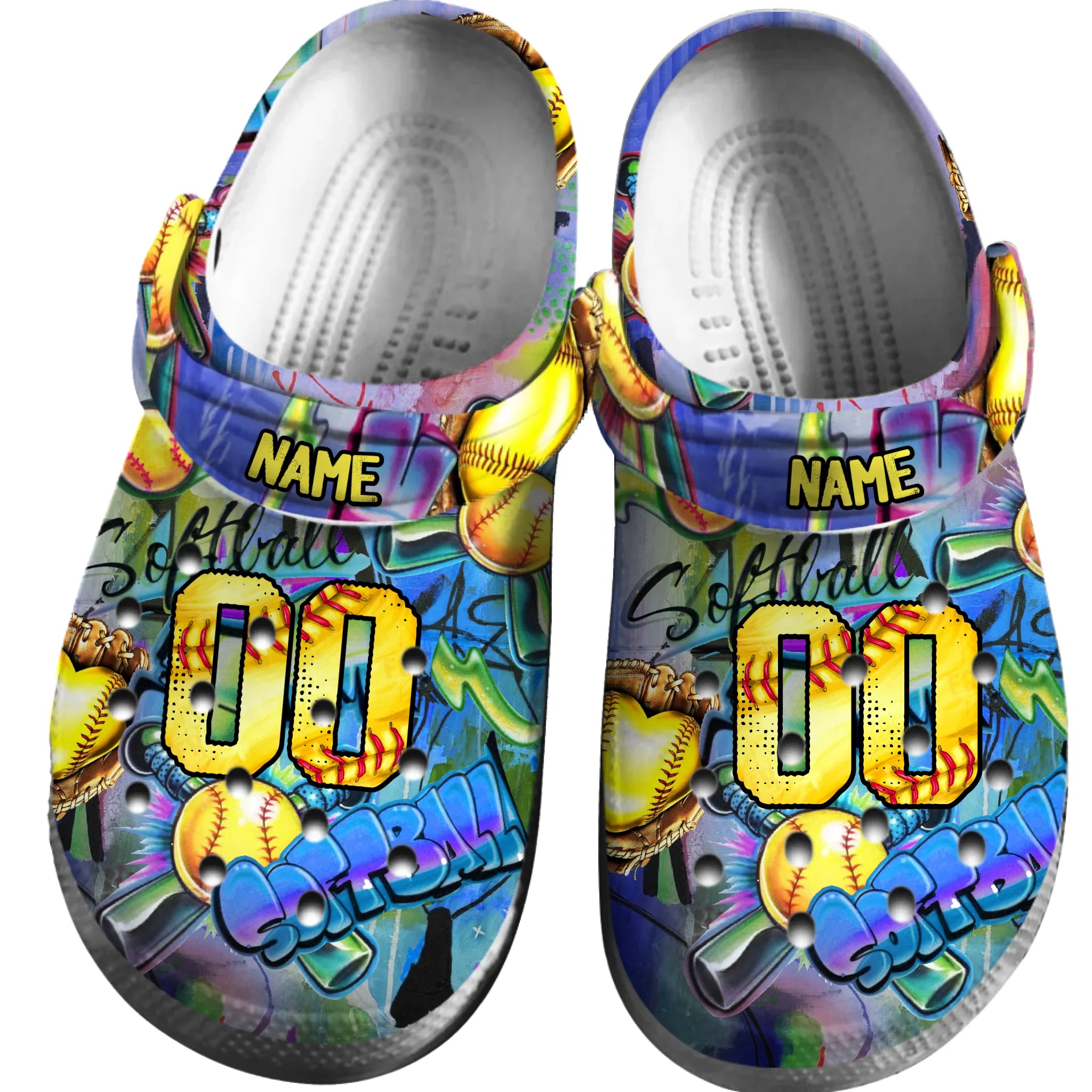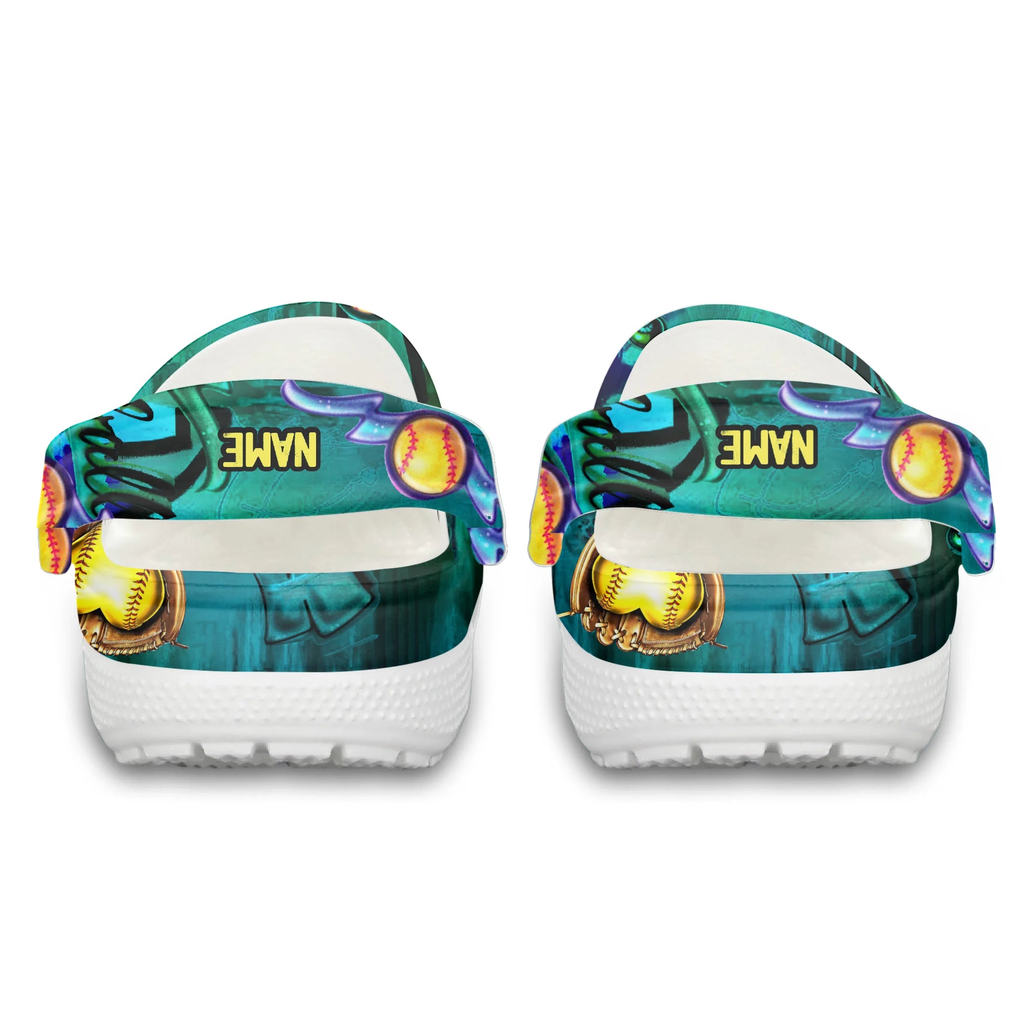 Teal Graffiti Softball Sport Custom Crocs And Clogs Shoes Printed For Men Women And Kids