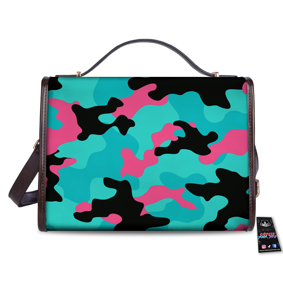 Teal Pink And Black Camouflage Print Women’s Satchel Bag