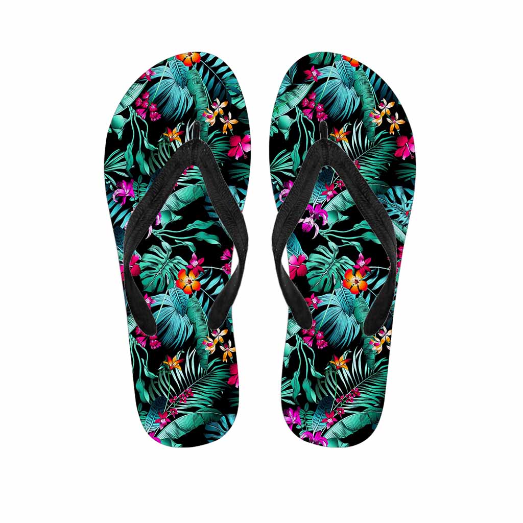 Teal Tropical Pattern Print Flip Flops For Men Women