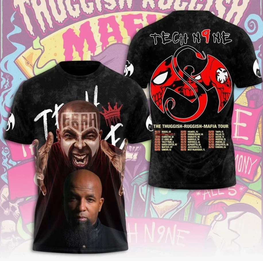 Tech N9Ne The Thuggish-Ruggish-Mafia Tour 2025 Aop 3D T-Shirt