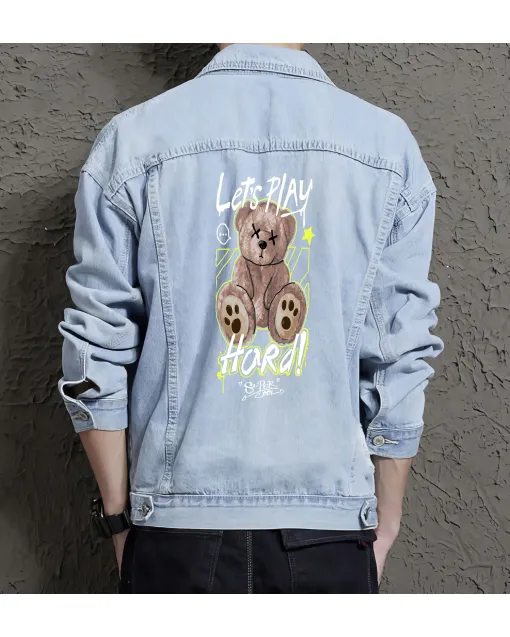 Teddy Bear Happiness Mood Denim Jacket For Men And Women