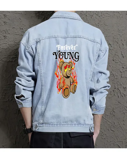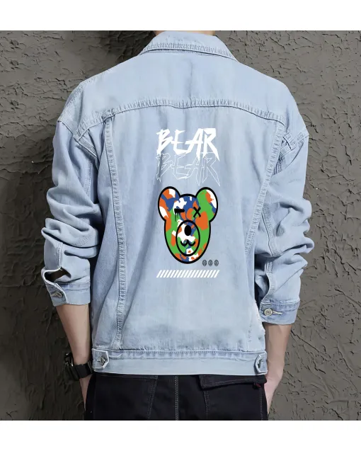 Teddy Bear Happiness Street Wear Style Denim Jacket For Men And Women