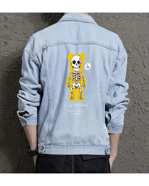 Teddy Bear Vibrant Graffiti Style Denim Jacket For Men And Women