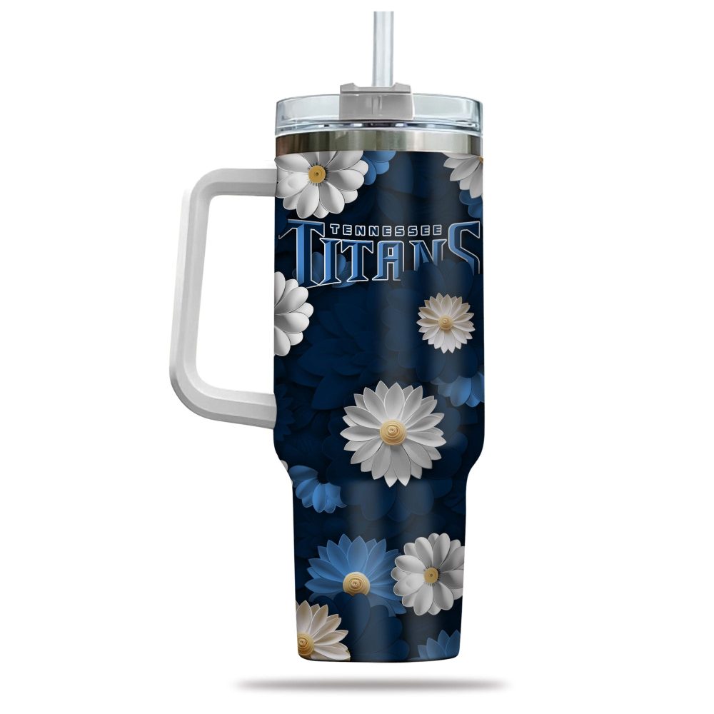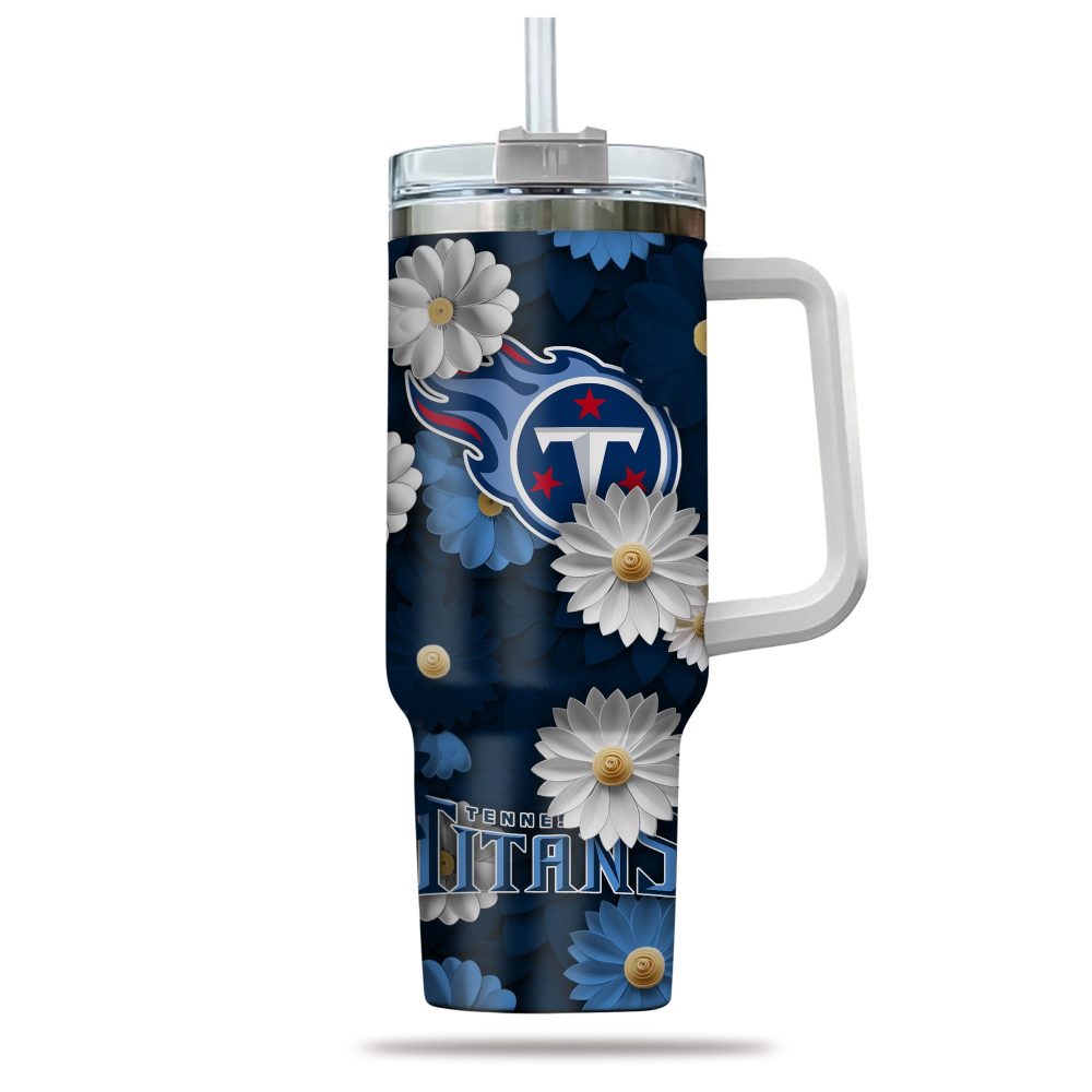 Tennessee Titans Nfl Flowers Custom Stanley Quencher 40Oz Stainless Steel Tumbler With Handle