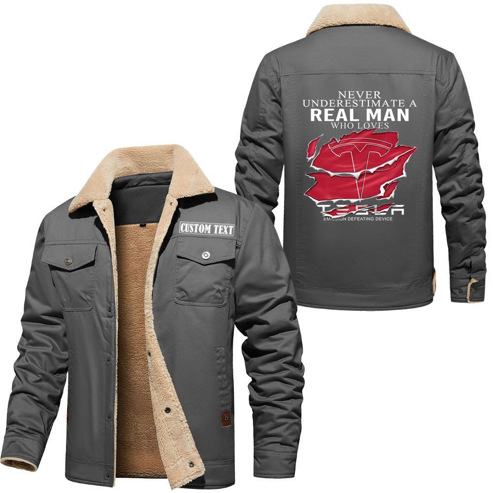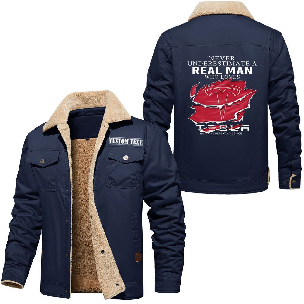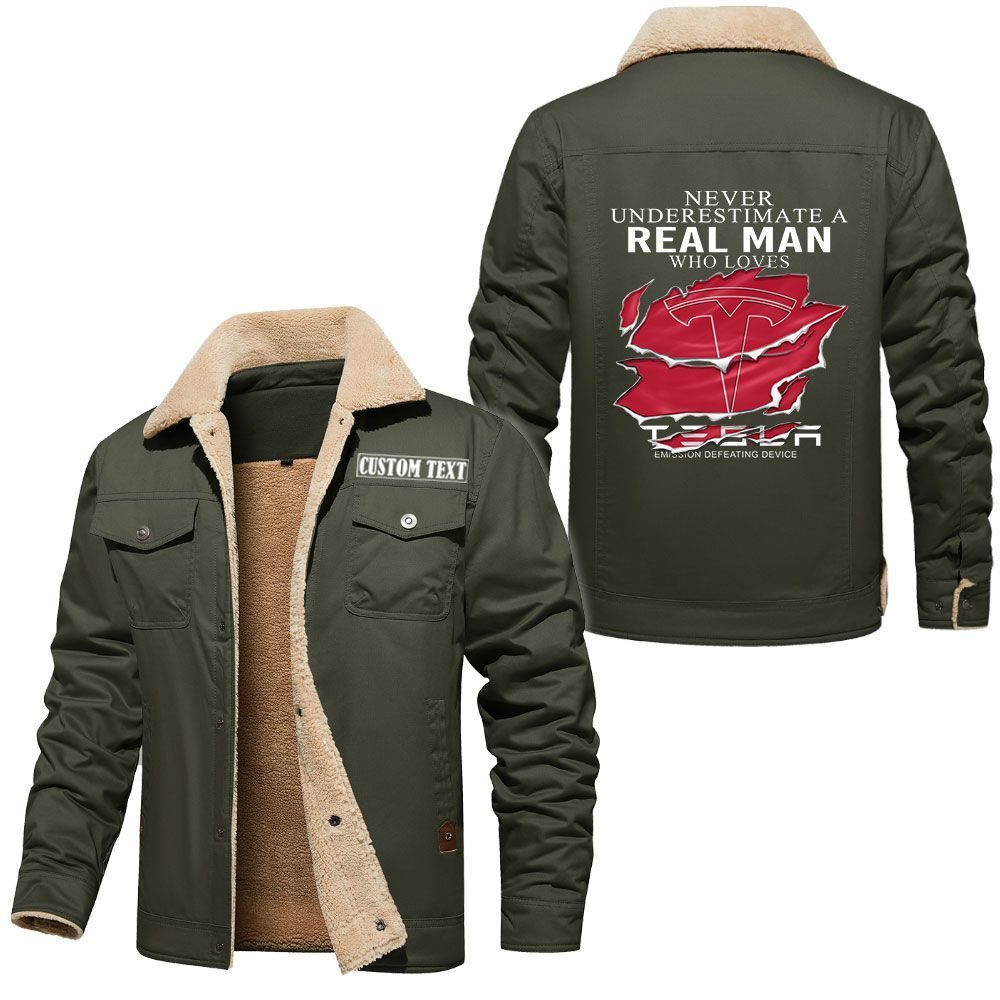 Tesla Motors Logo Custom Name Cargo Fleece Lined Cotton Jacket A Real Man Who Loves Personalized Outerwear