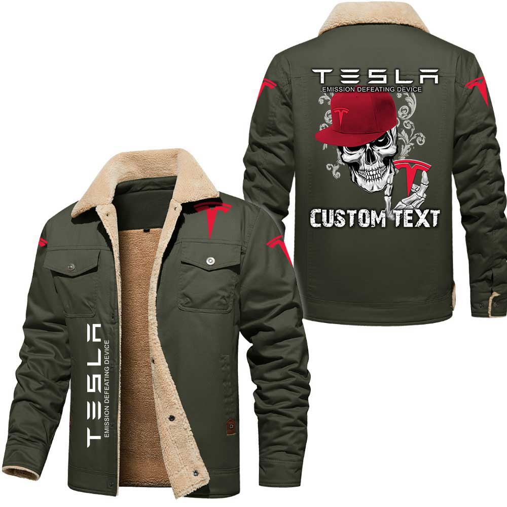 Tesla Motors Skull Custom Name Cargo Fleece Lined Cotton Jacket