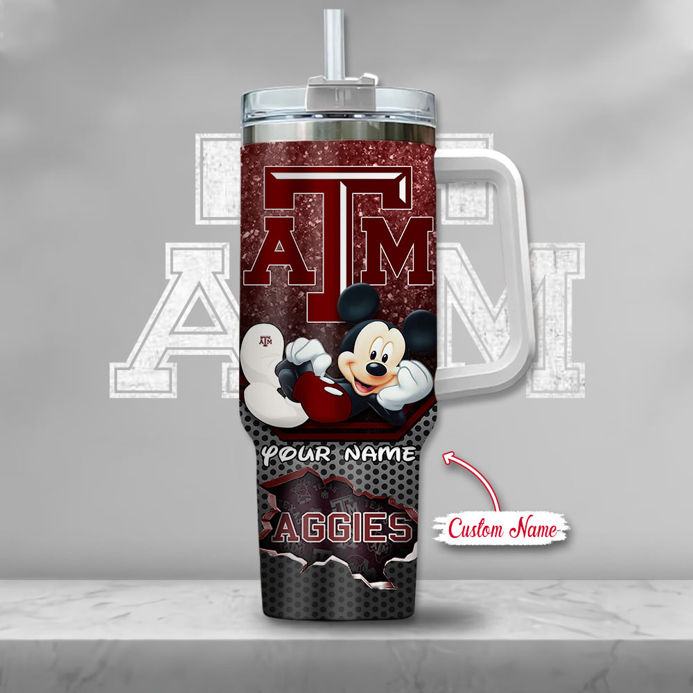 Texas A #038;M Aggies Ncaa Mickey Mouse Custom Stanley Quencher 40Oz Stainless Steel Tumbler With Handle