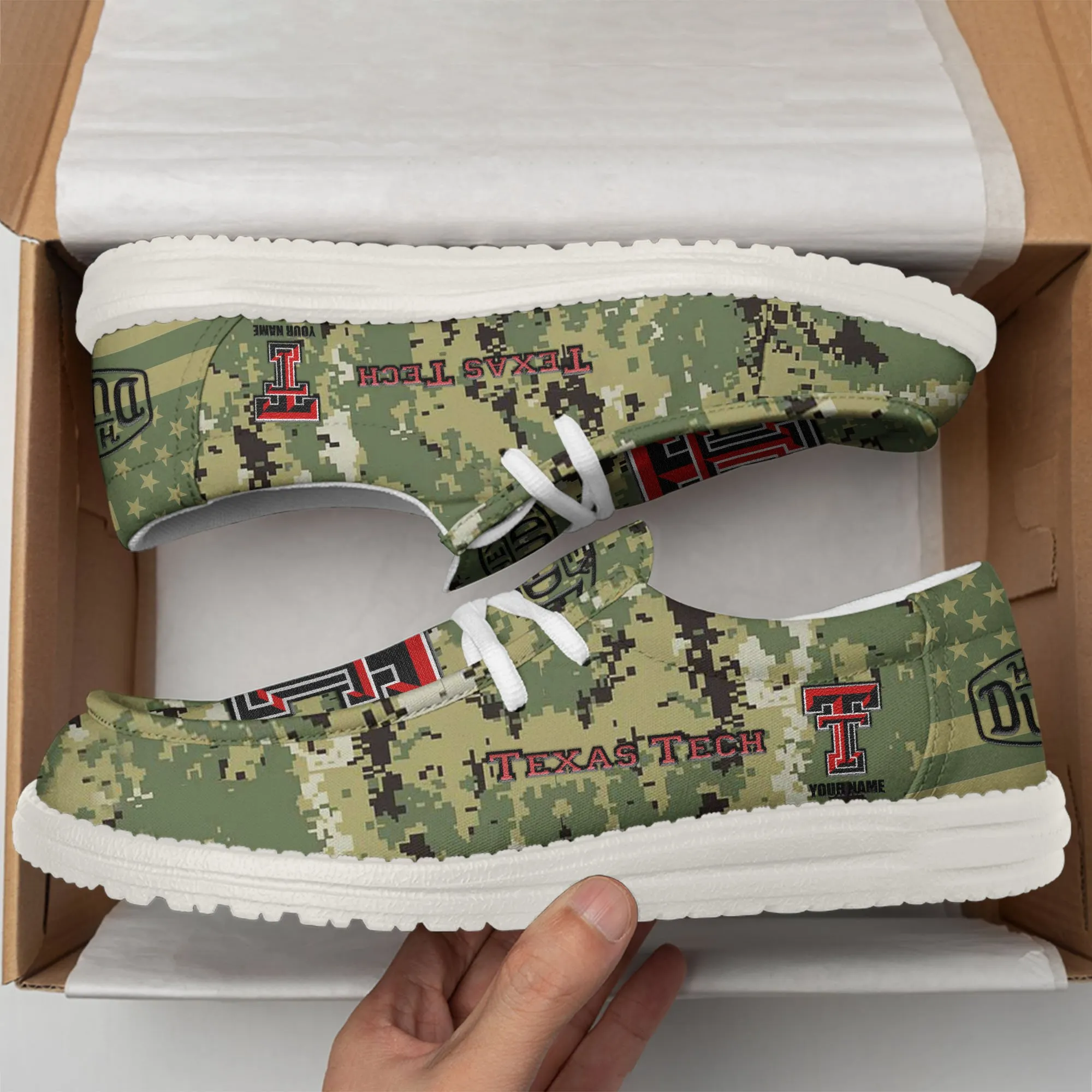 Texas Tech Red Raiders 3D Print Dude Shoes Camo Green Best Gift For Sport Fan