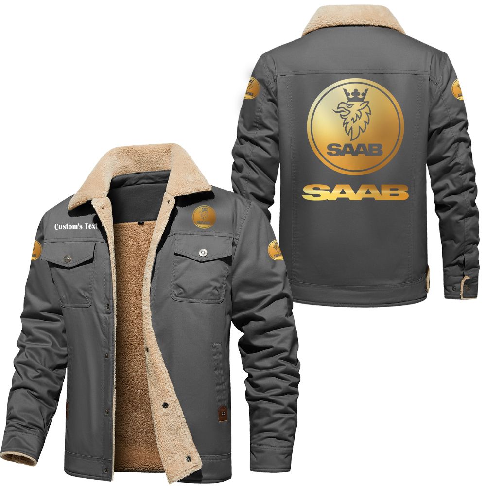 toyota Hilux Golden Logo Custom Cargo Fleece Lined Cotton Jacket Dark Grey
