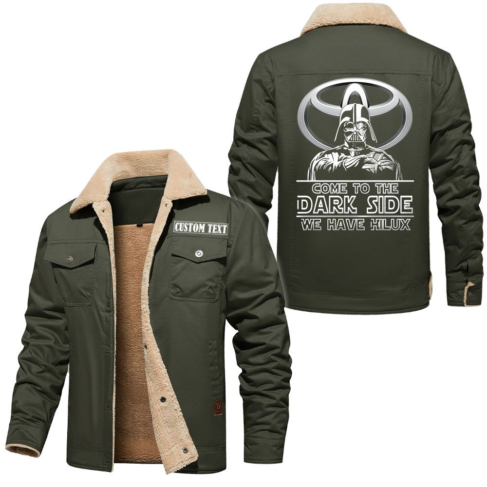 Toyota Hilux Logo Custom Name Cargo Fleece Lined Cotton Jacket Personalized Outerwear with Dark Side Star Wars Design