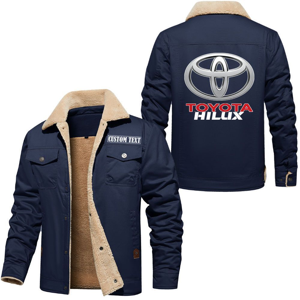 Toyota Hilux Logo Custom Name Cargo Fleece Lined Cotton Jacket Stylish Warm Personalized Outerwear