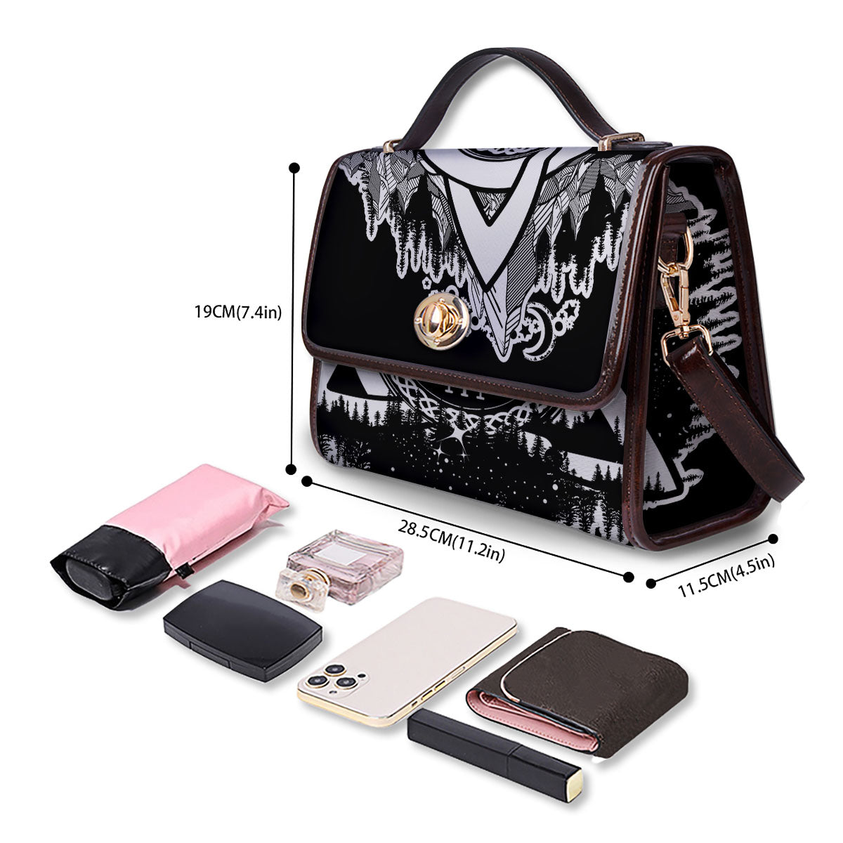 Design: Classic flap design with a secure metal twist-lock closure for added safety and elegance.