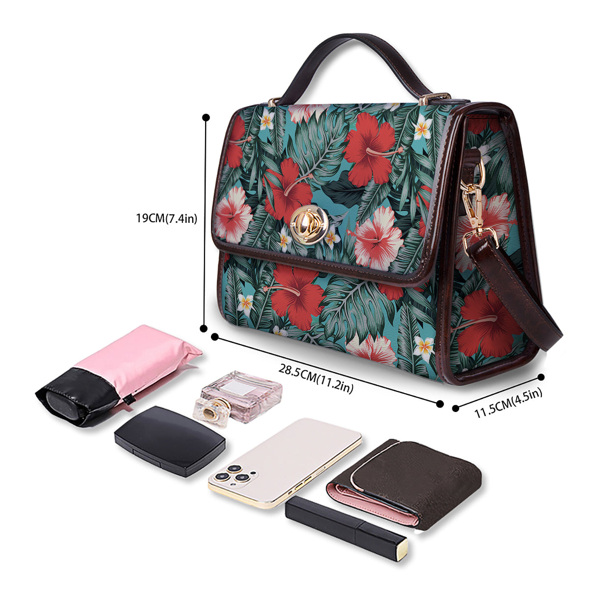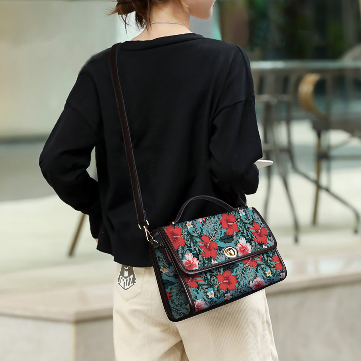 Tropical Leaf Turquoise Print Pattern Women’s Satchel Bag