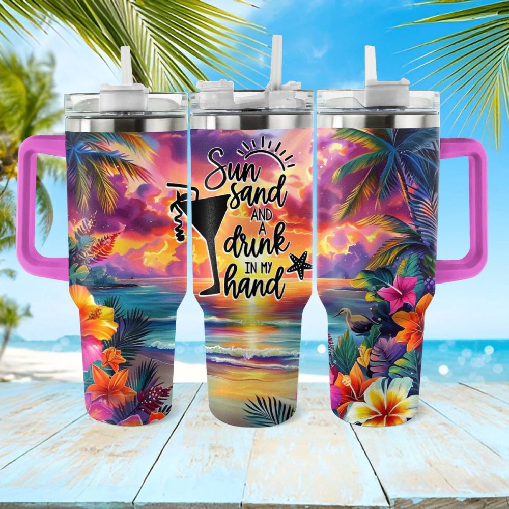 Tropical Sunset Custom Stanley Quencher 40Oz Stainless Steel Tumbler With Handle