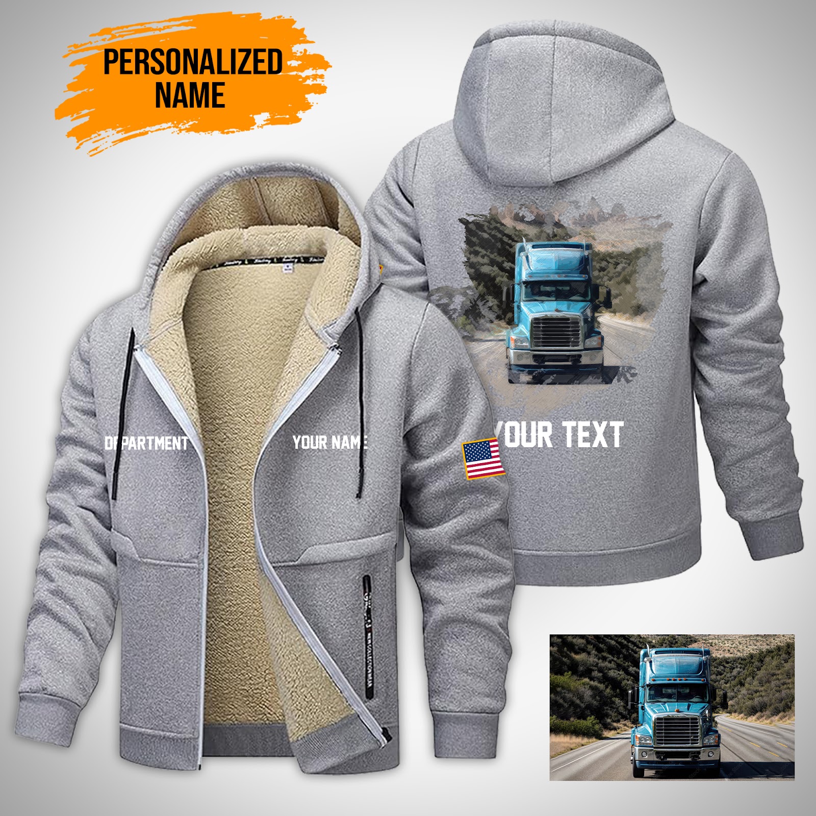 Trucking Personalized Name Lamb Fleece Thick Coat Dark Grey