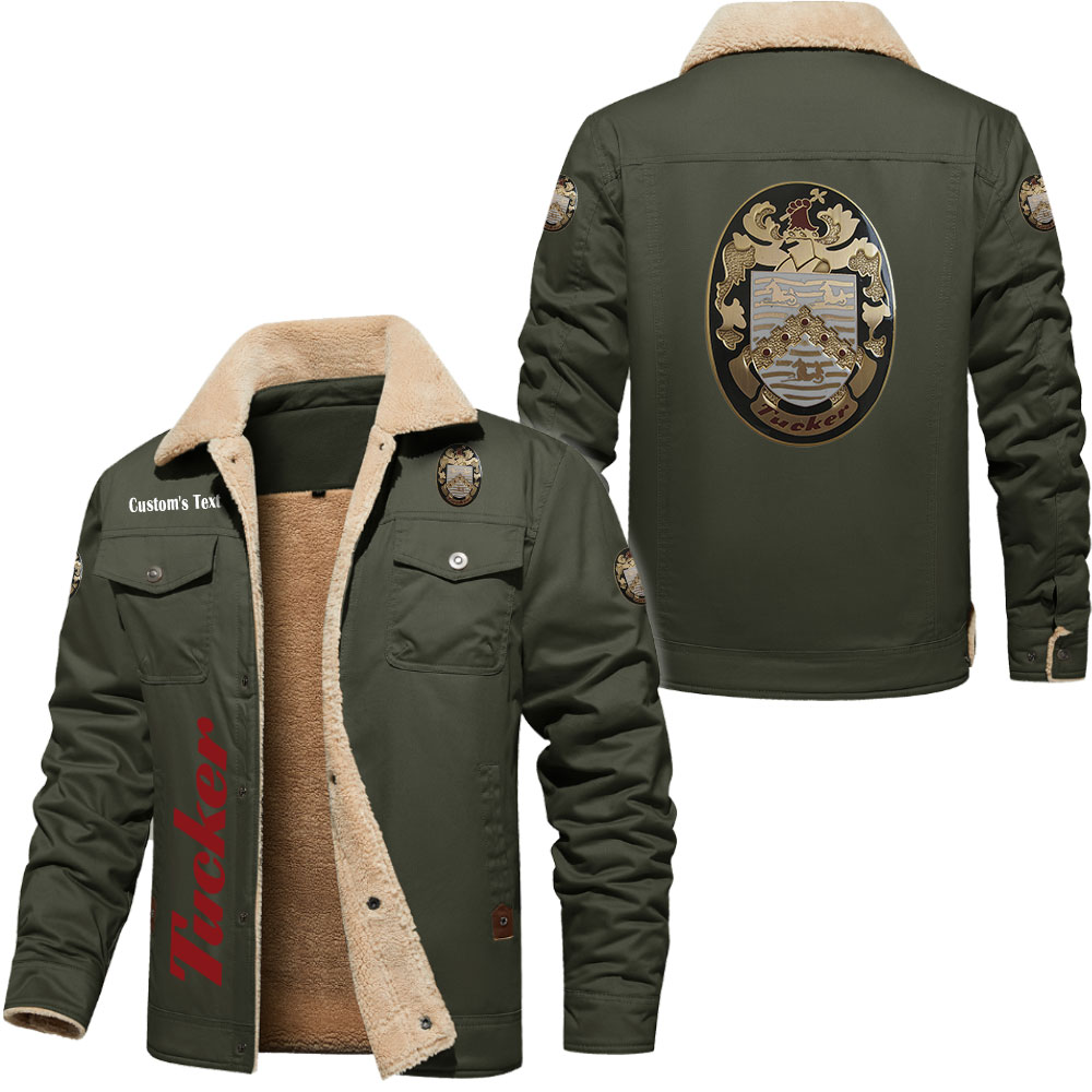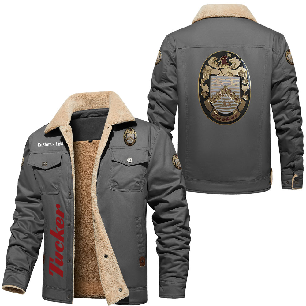 Tucker Logo Custom Text Cargo Fleece Lined Cotton Jacket