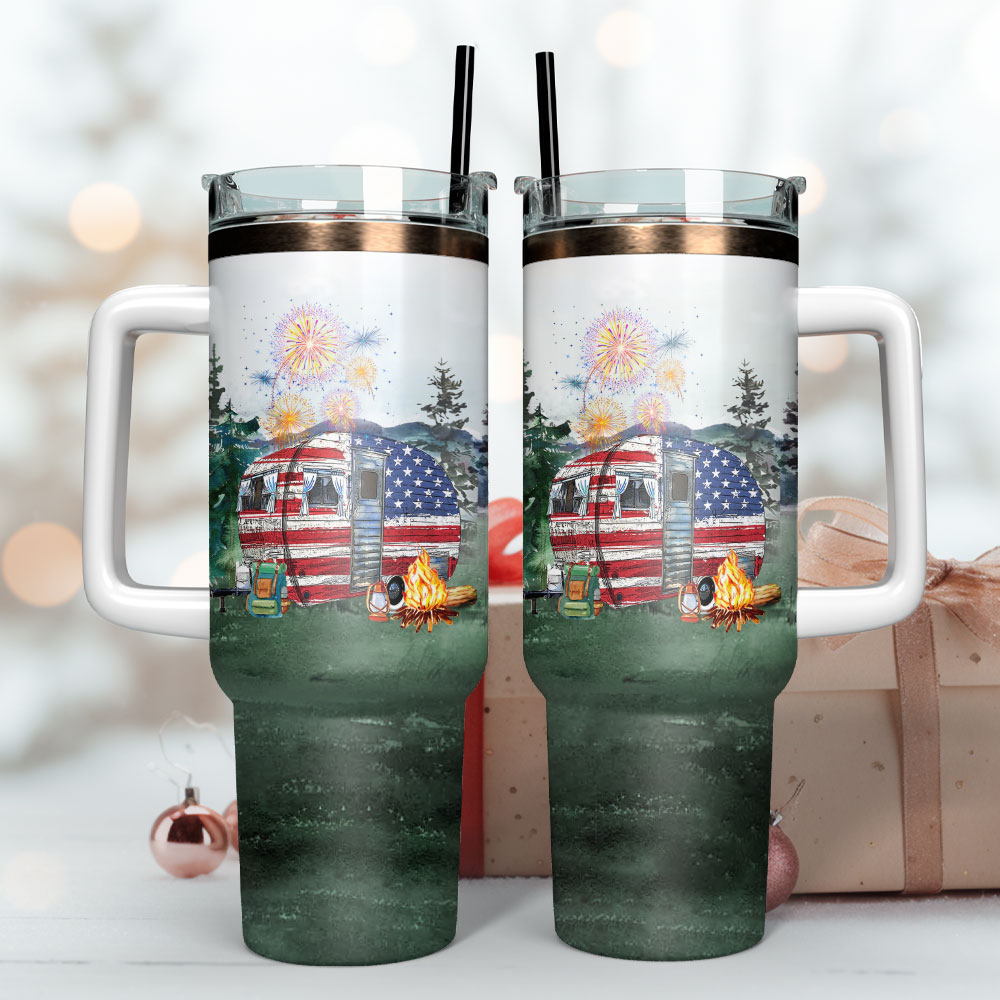 Usa Trailer Watercolor Custom Stanley Quencher 40Oz Stainless Steel Tumbler With Handle
